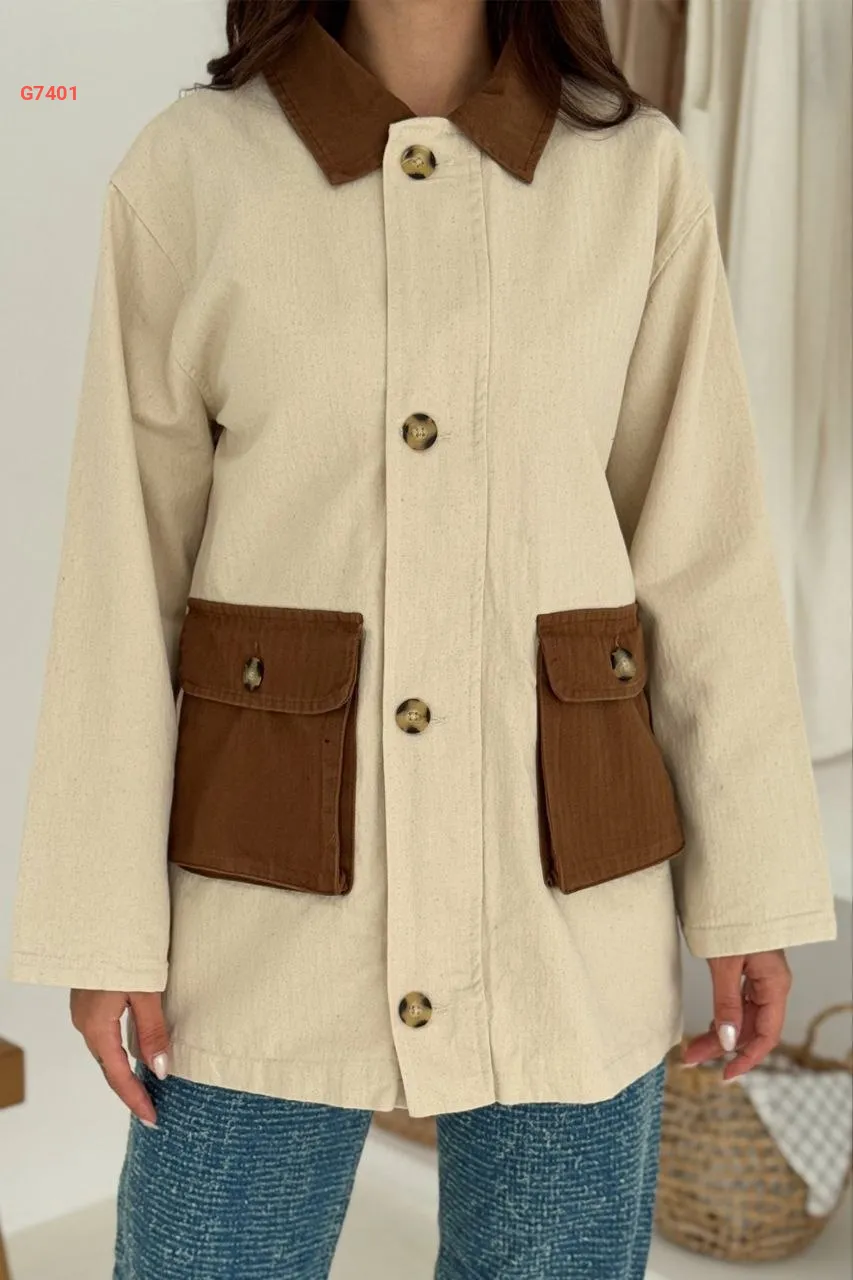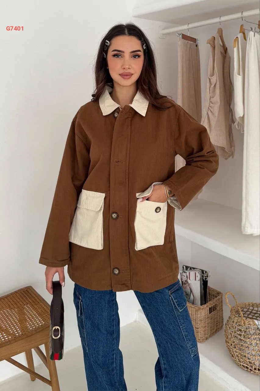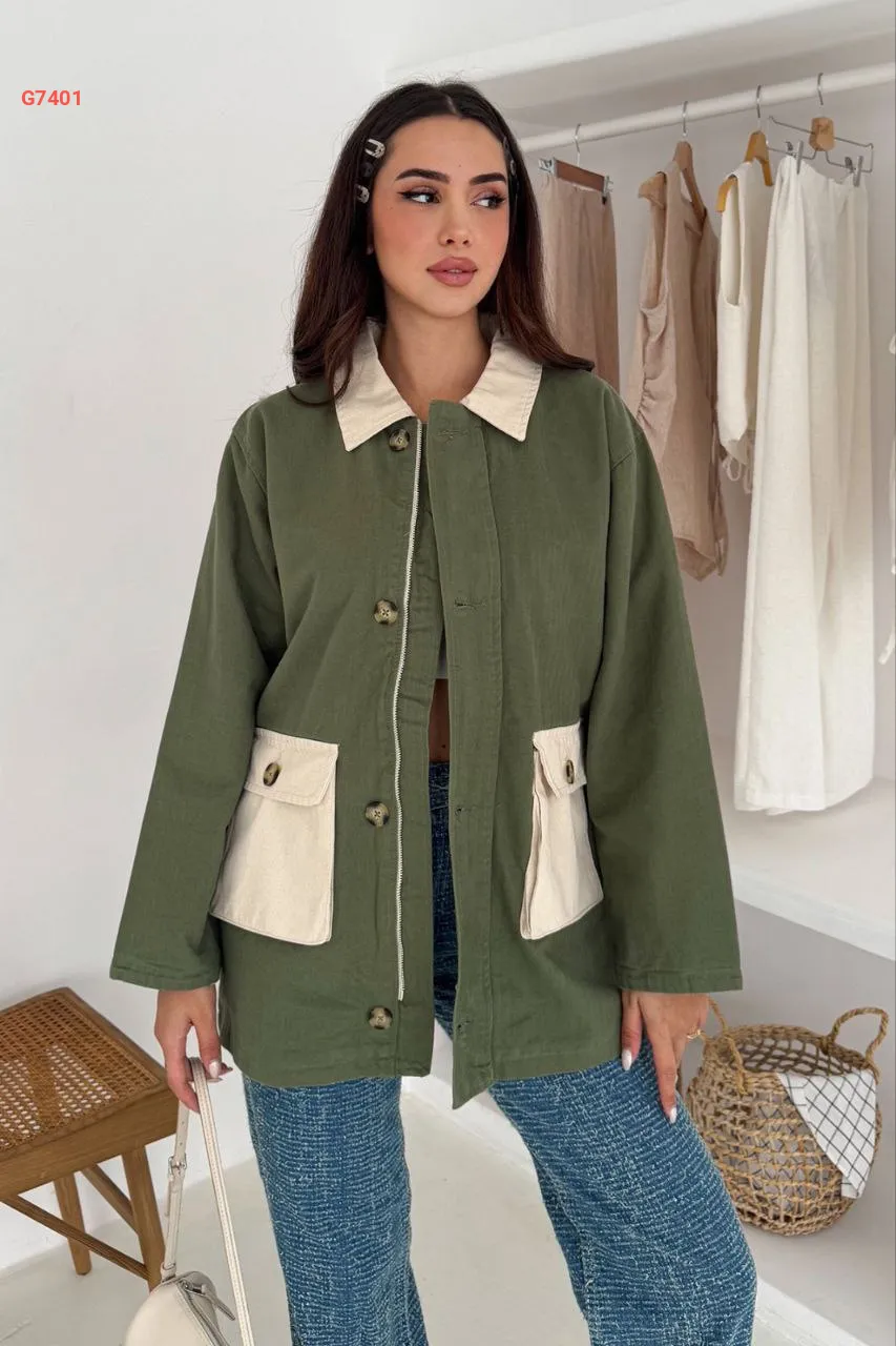جاكيت لونين بسحاب وأزرار مع جيوب