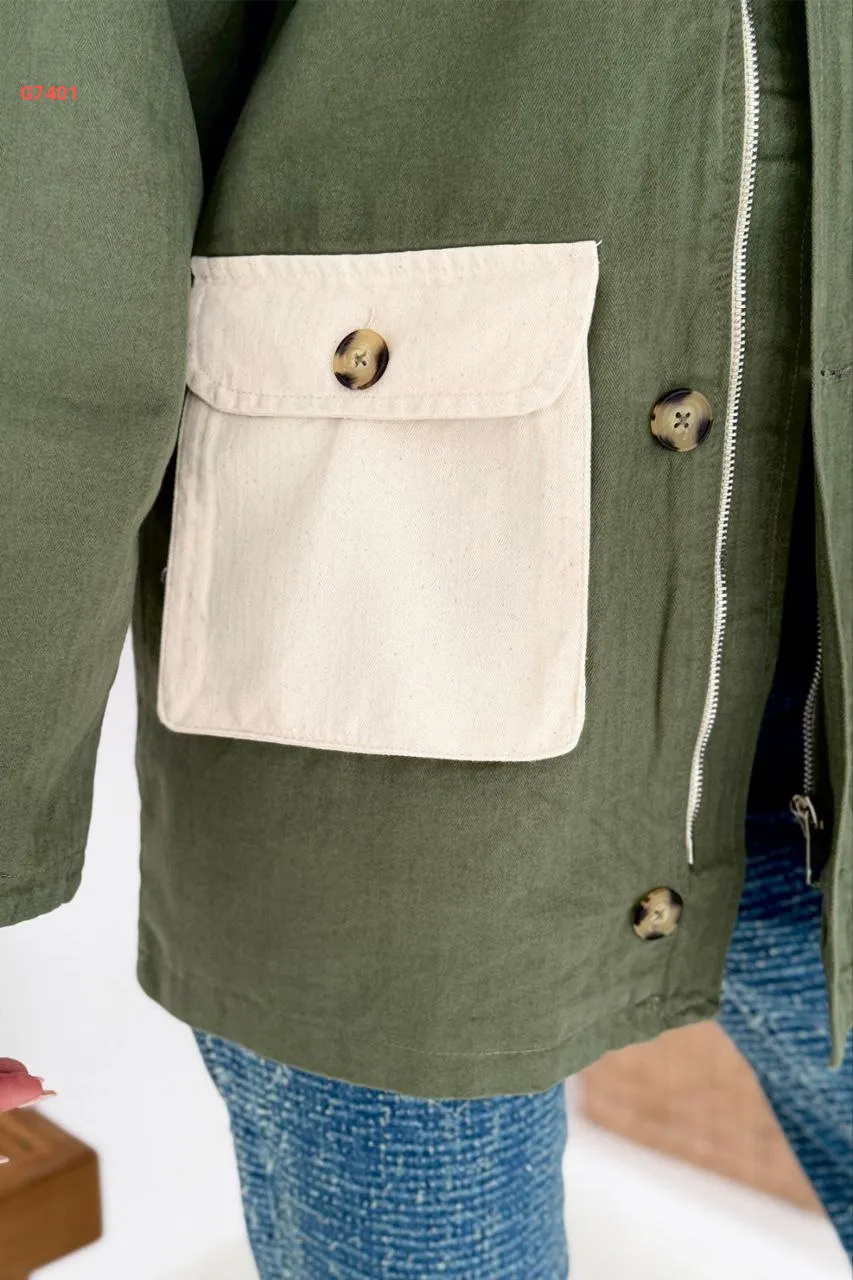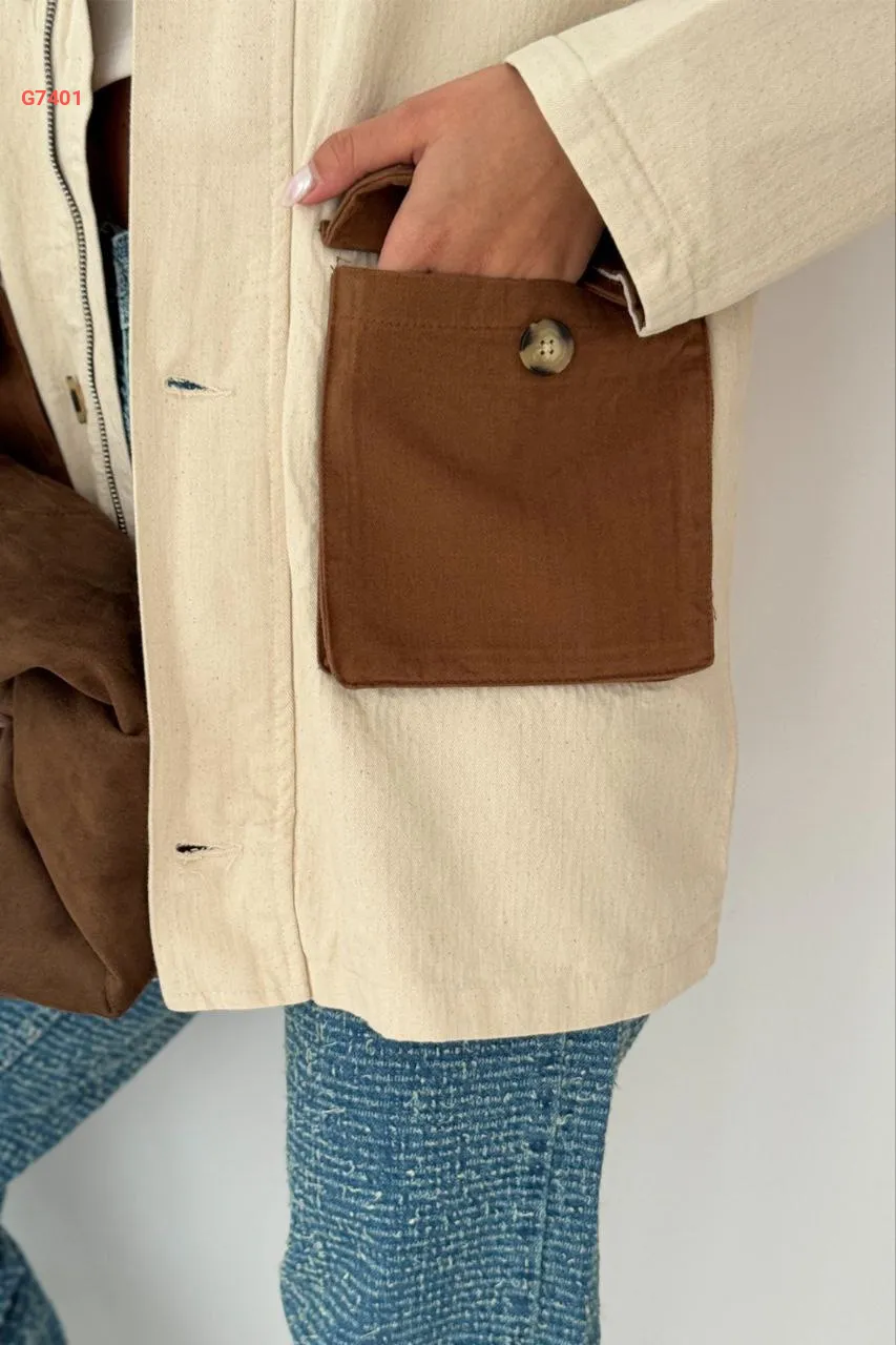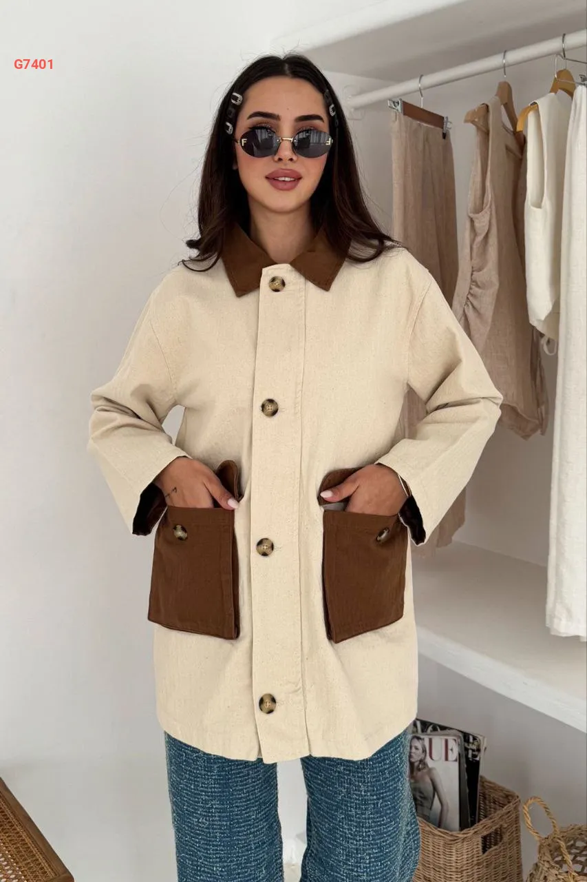 جاكيت لونين بسحاب وأزرار مع جيوب
