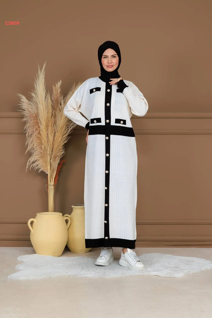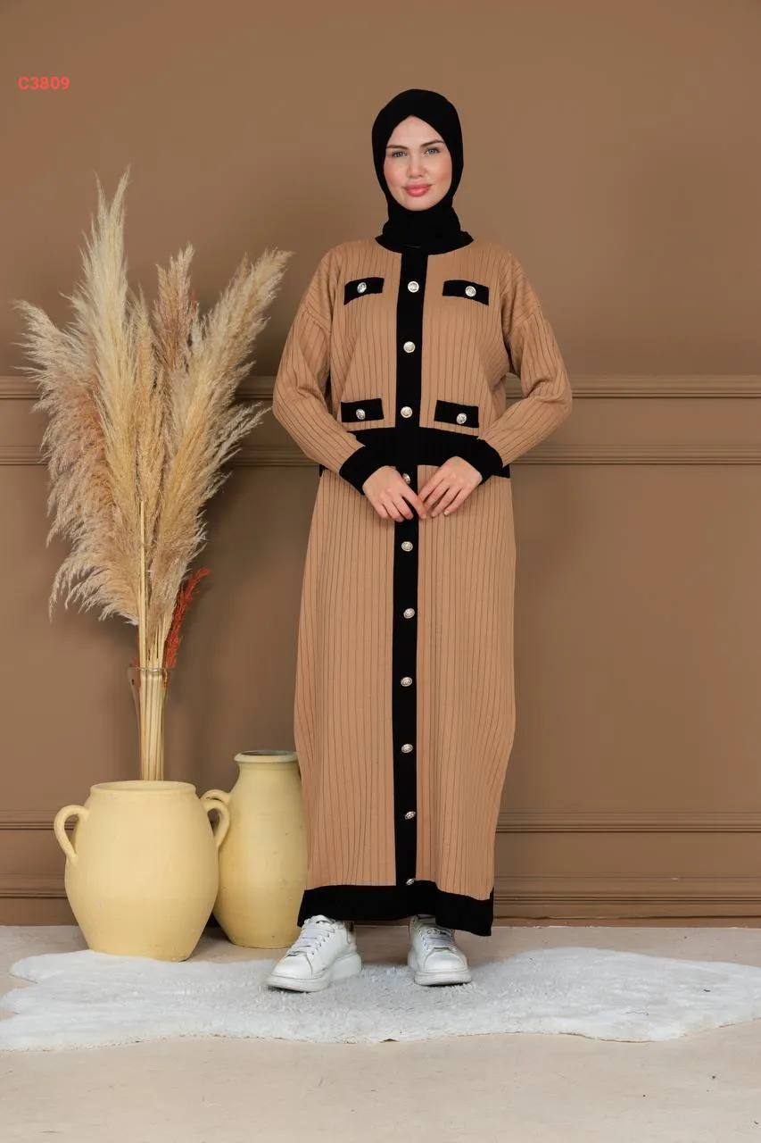 فستان تريكو لونين بأزرار