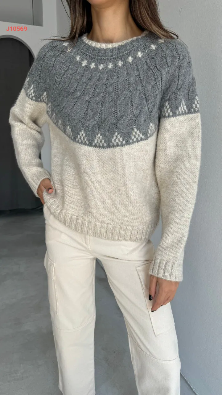 كنزة نص كم صوف مجدول