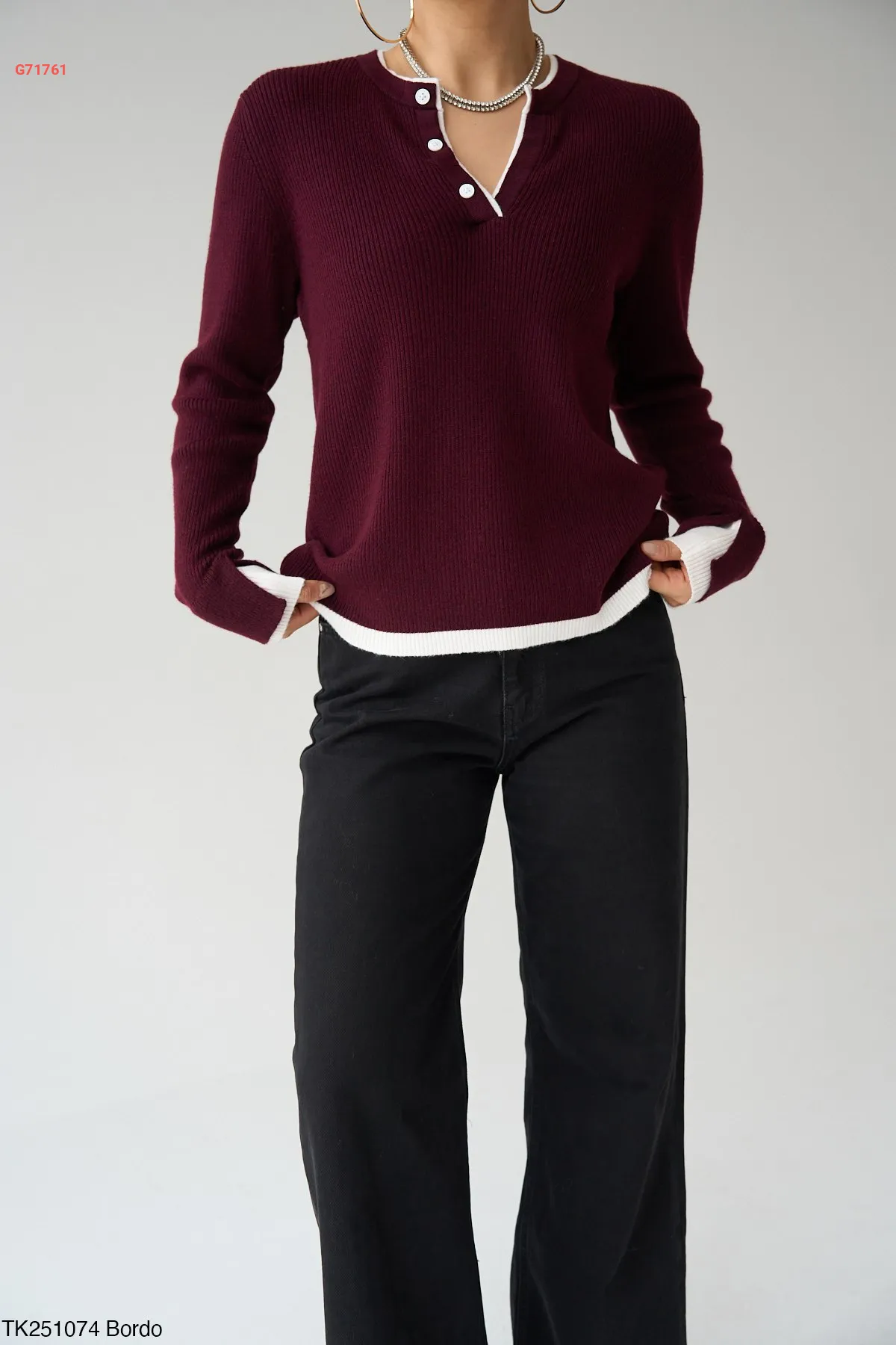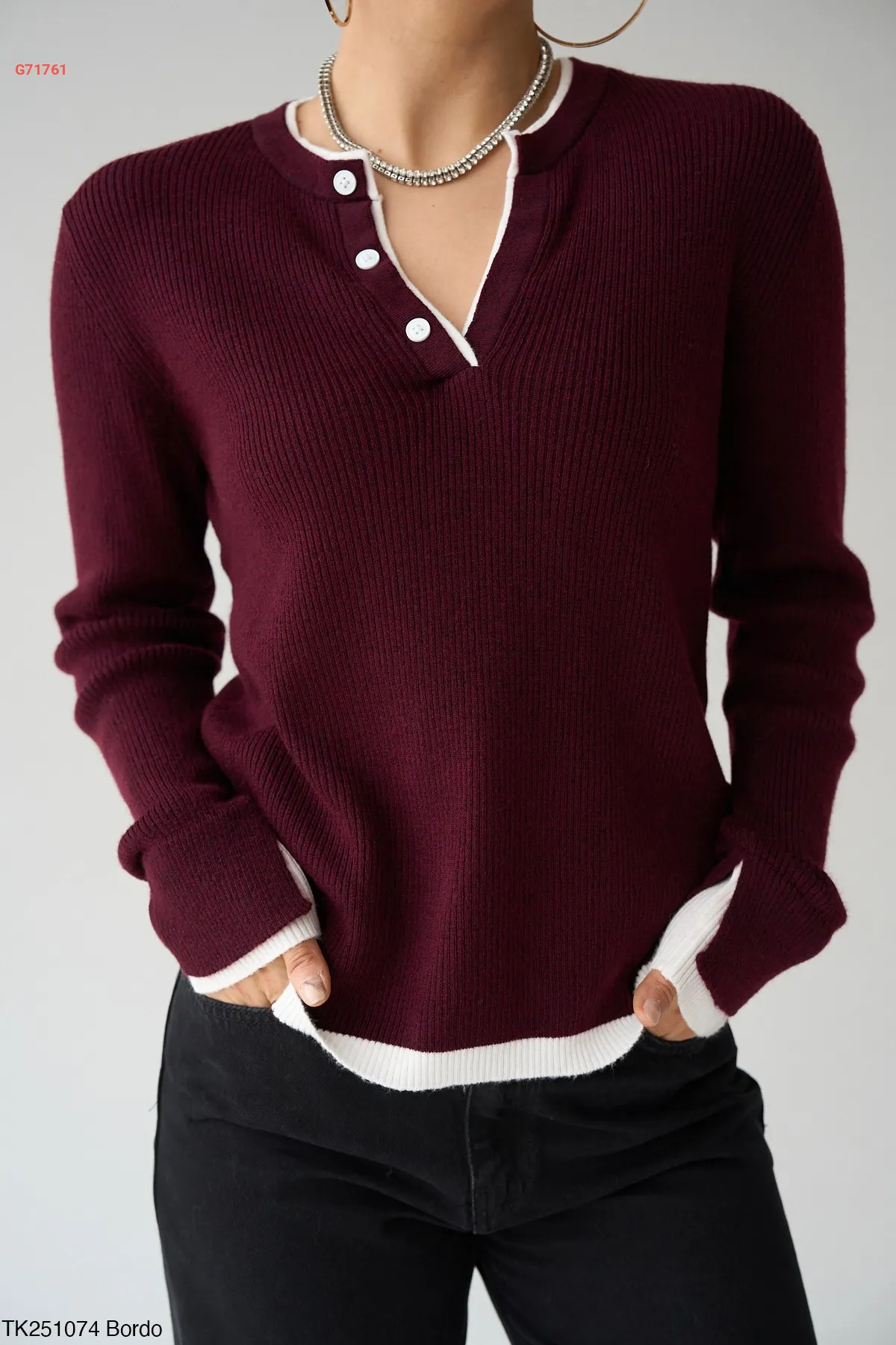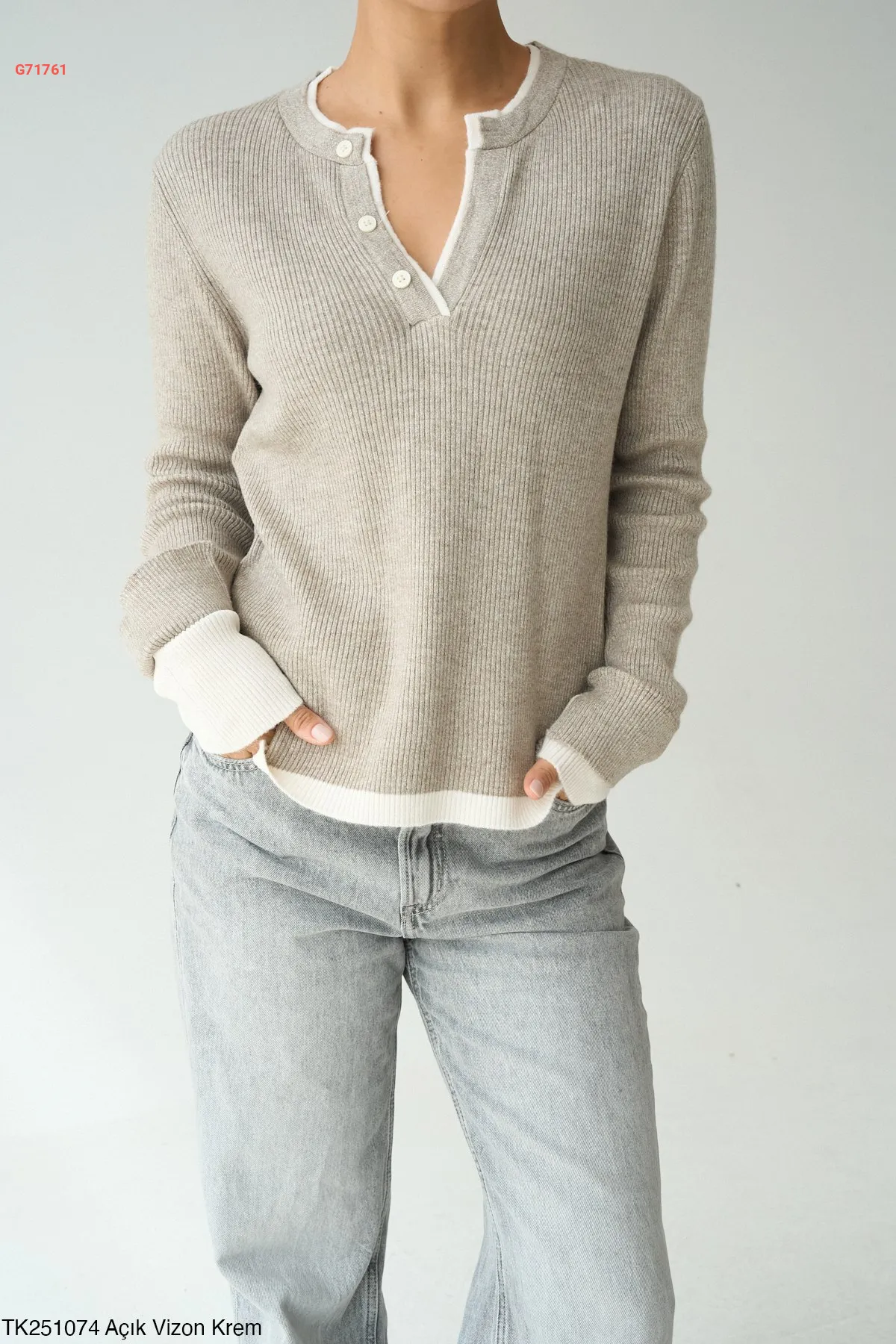 كنزة تريكو لونين قبة v بأزرار
