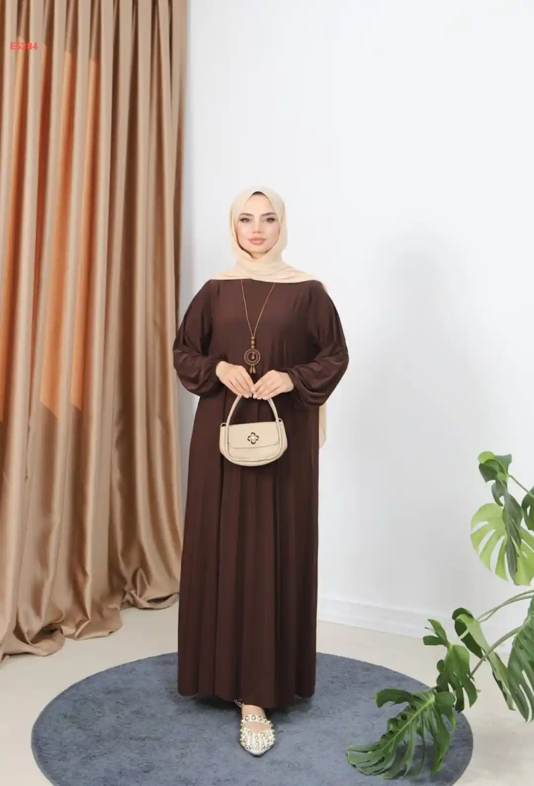 فستان شامواه طويل لونين بفيونكة