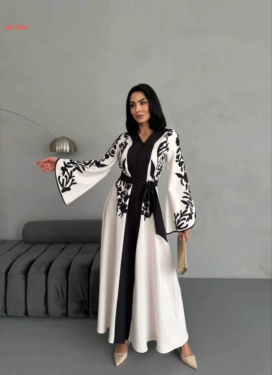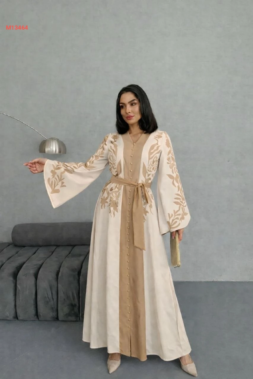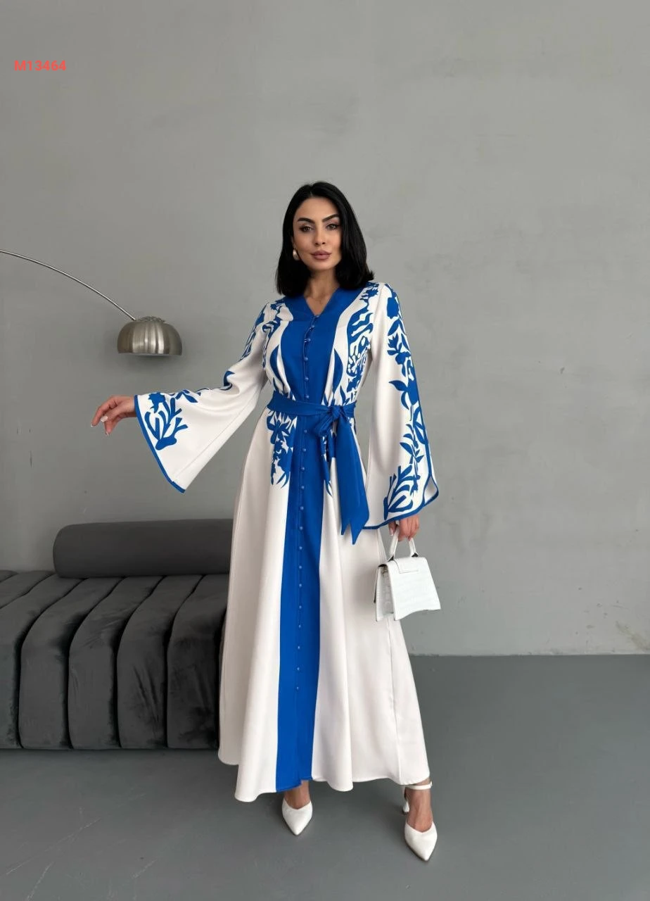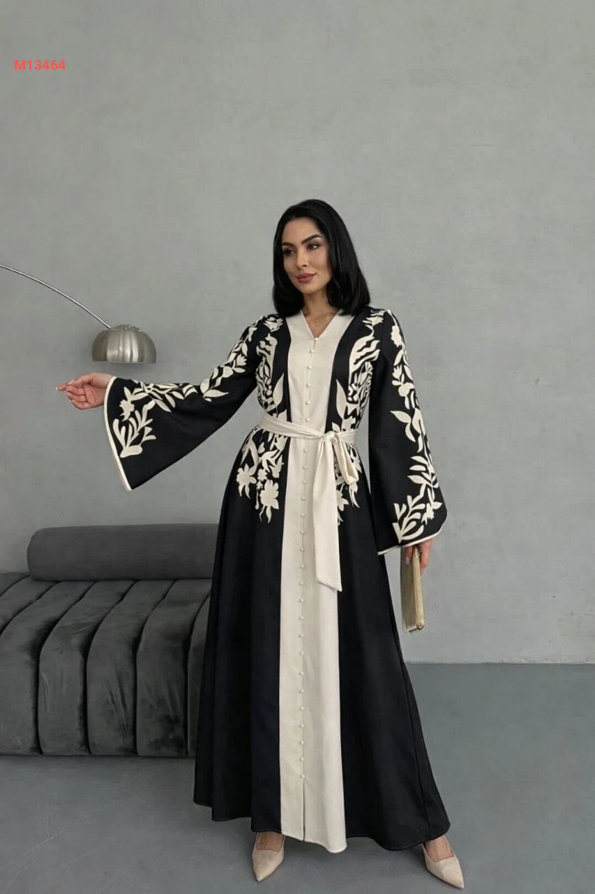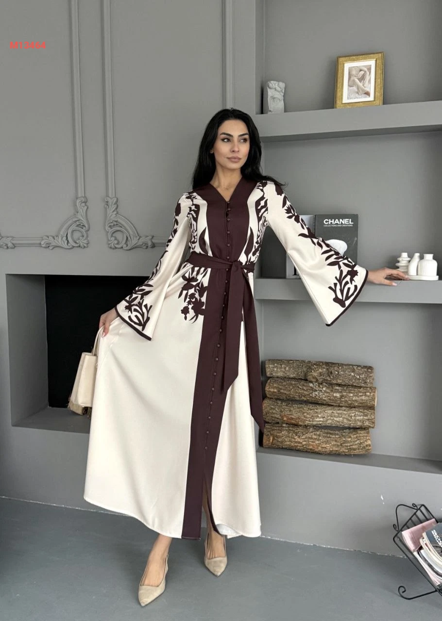 فستان طويل لونين بأزرار وزنار