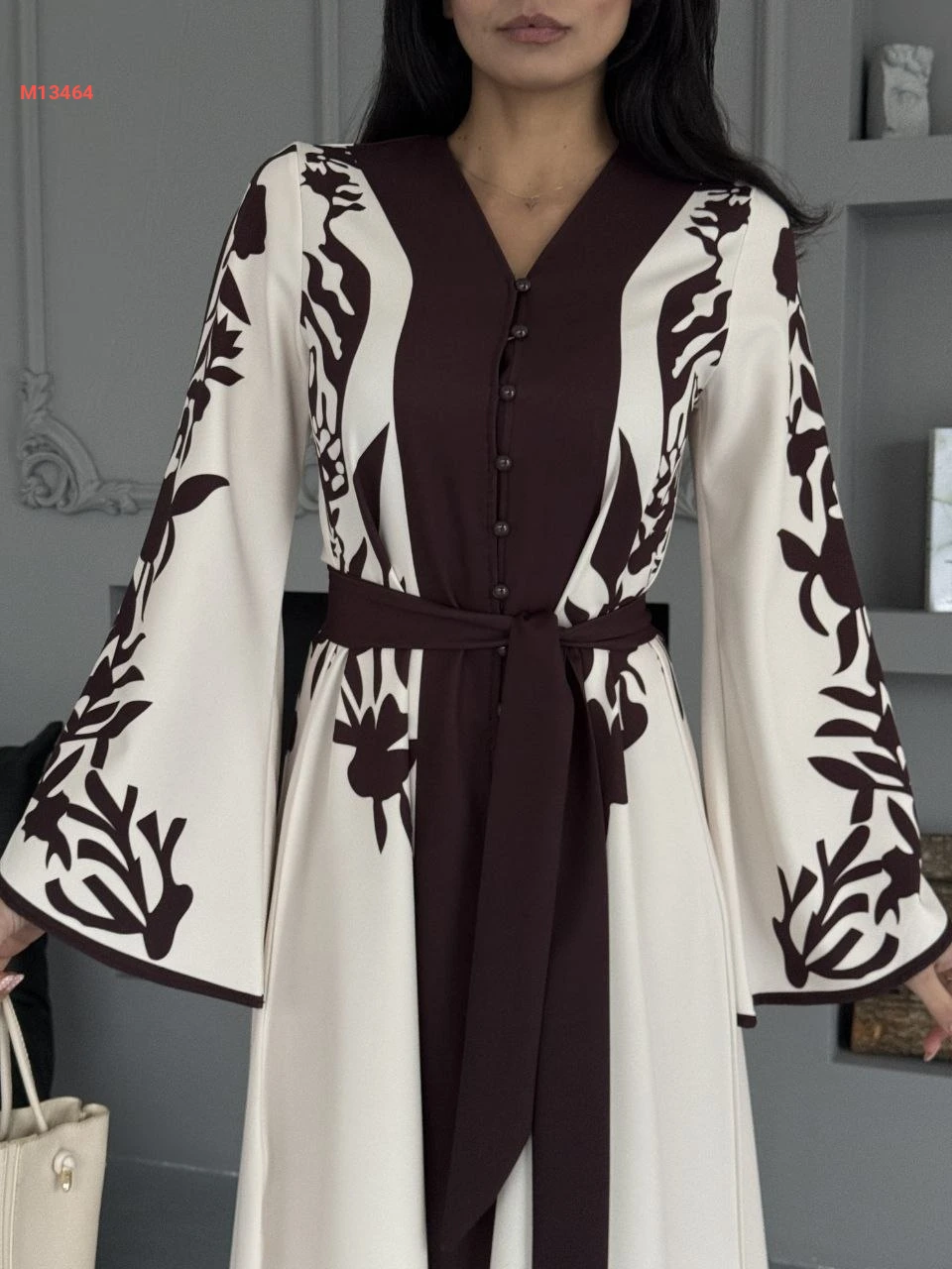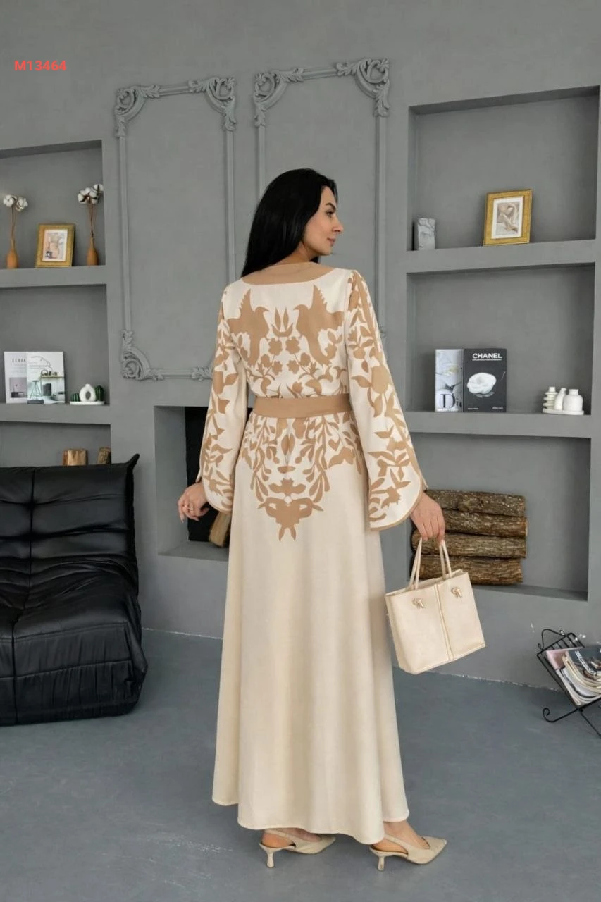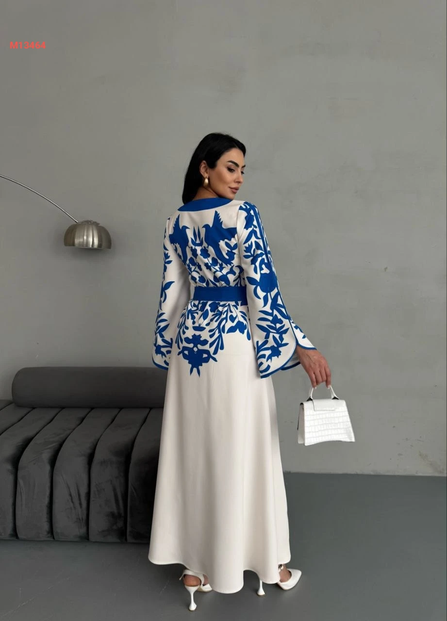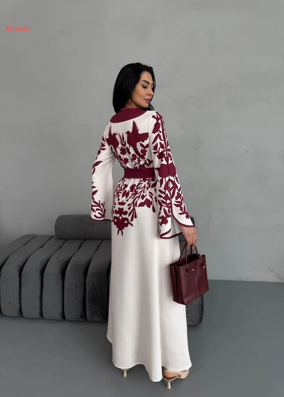 فستان طويل لونين بأزرار وزنار