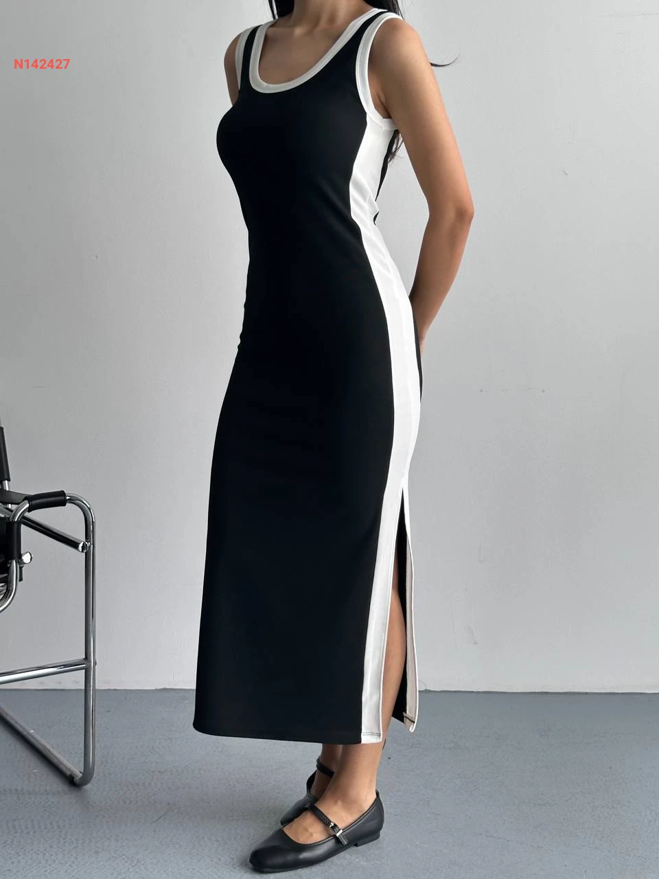 فستان حفر سبور لونين بفتحات جانبية