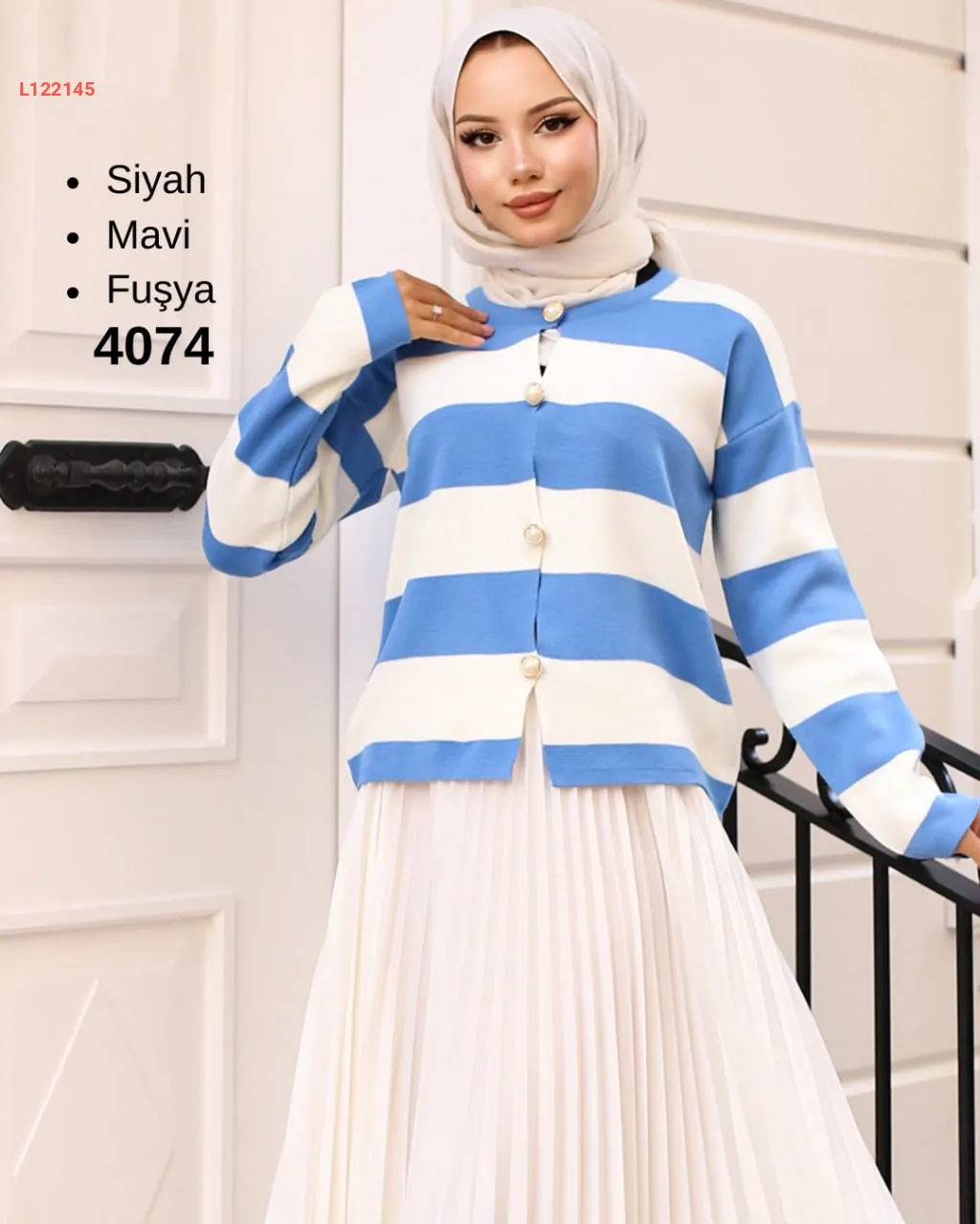 جاكيت تريكو مخطط لونين محجبات