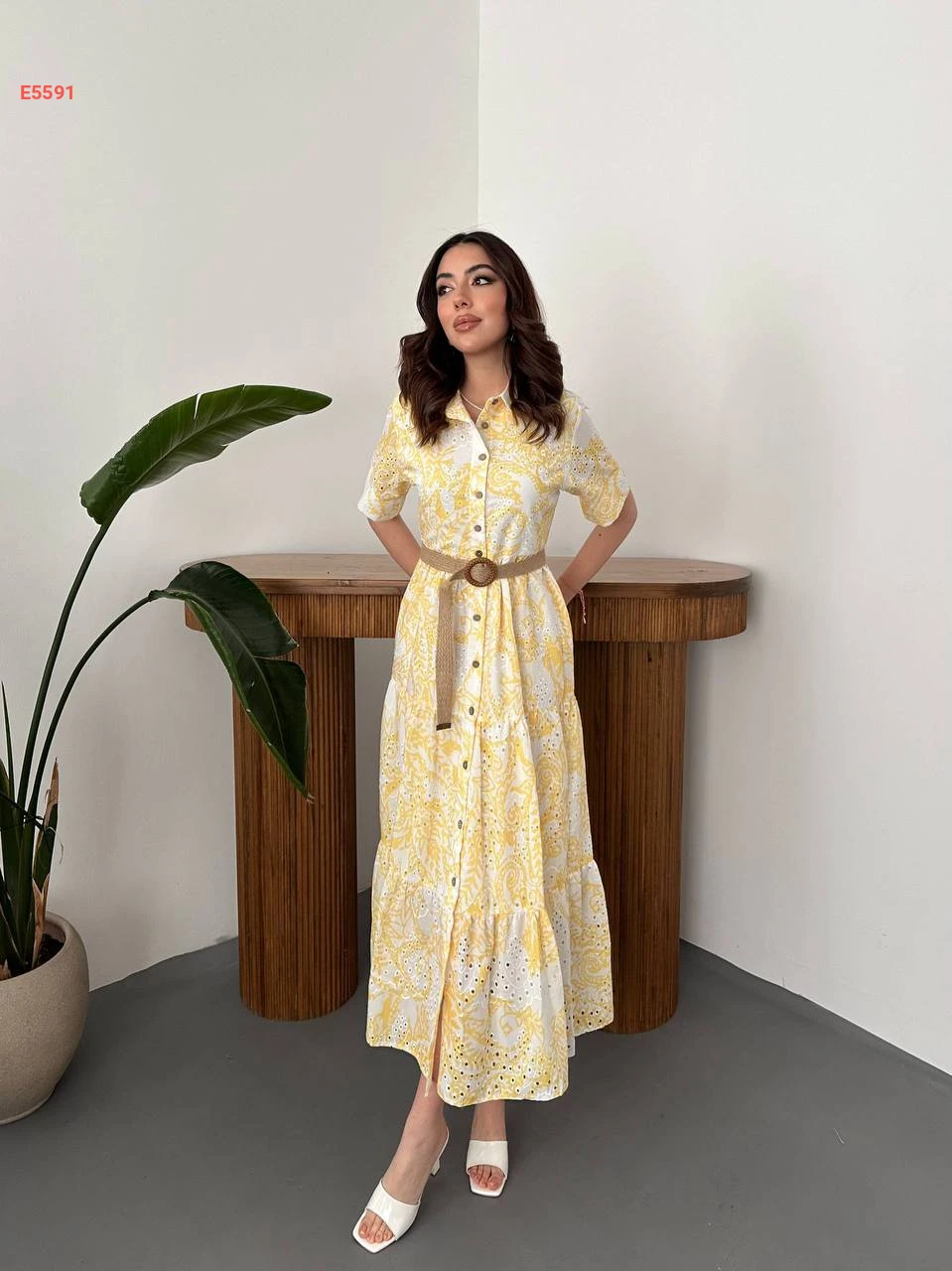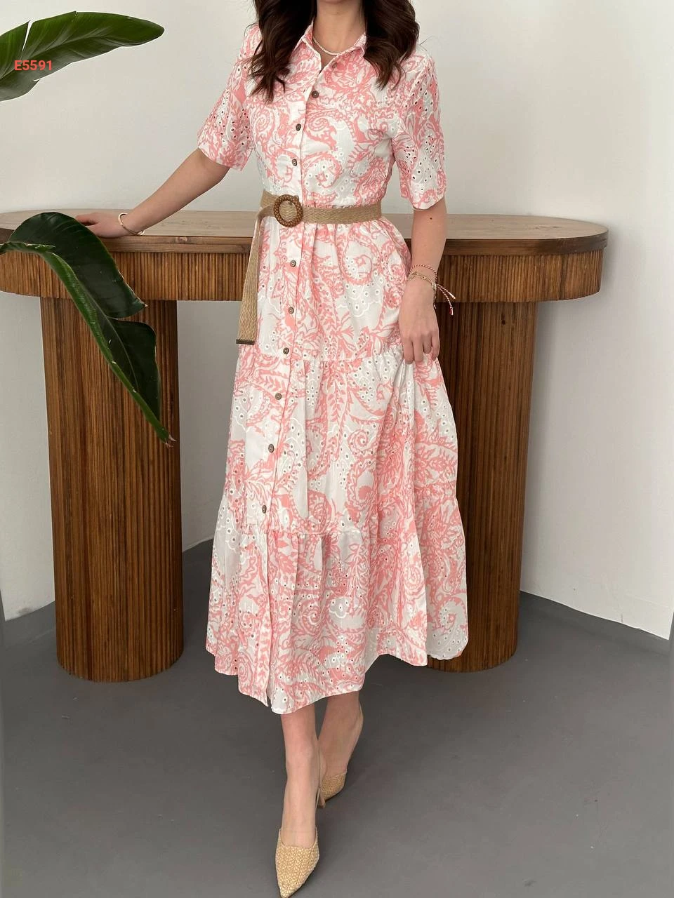 فستان صيفي لونين مطرز بأزرار