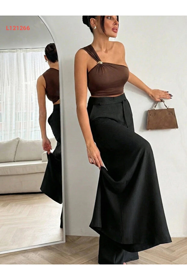 استمتعي بالأناقة والراحة مع بنطلون "URİS" الأسود ذو الخصر العالي وقصته الواسعة. مصنوع من قماش الكتان الناعم، يمنحك هذا البنطلون مظهرًا عصريًا ومريحًا في نفس الوقت، مما يجعله الخيار المثالي لكل المناسبات. بفضل تصميمه الفريد، يمكنك تنسيقه بسهولة مع إطلالتك اليومية أو الخروج مع الأصدقاء.