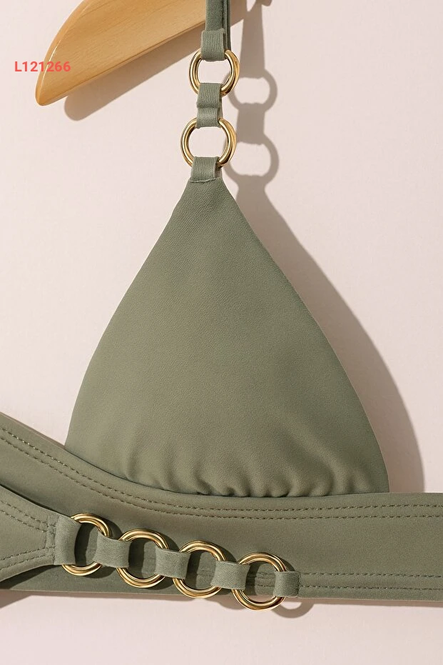 مجموعة بيكيني مثلث بتفاصيل ذهبية - إلفين جولد | ملابس شاطئية بدون دعم 2026 موسم جديد