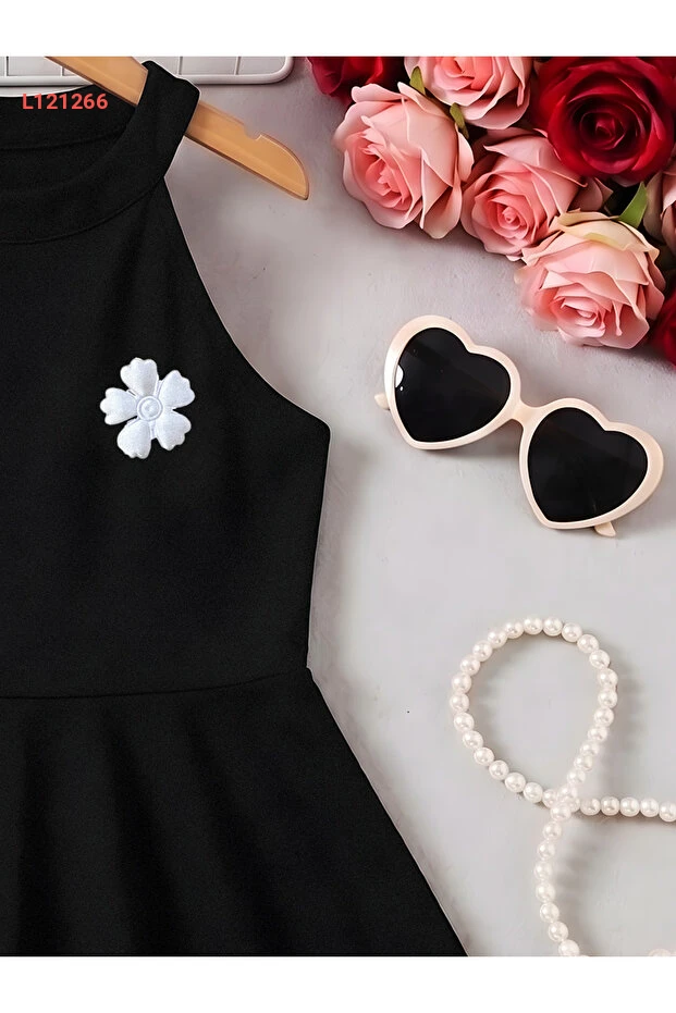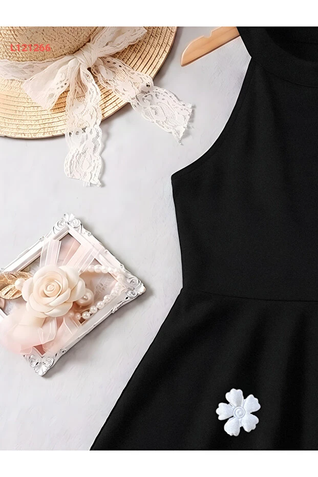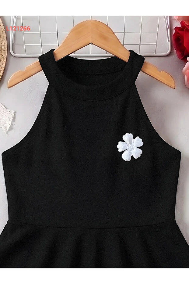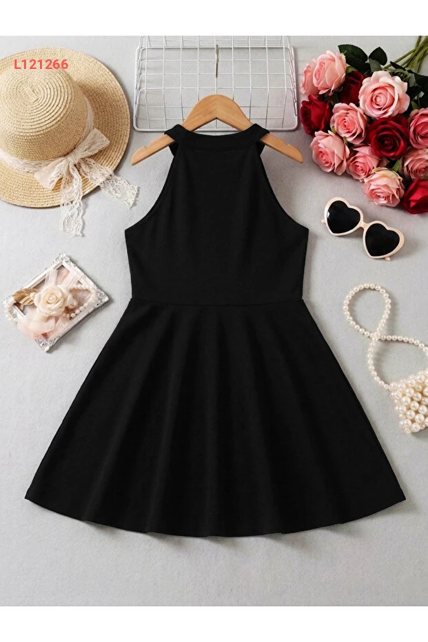 فستان بنات أسود بحمالة رقبة - فستان صيفي أنيق بلا أكمام (3-12 سنة)