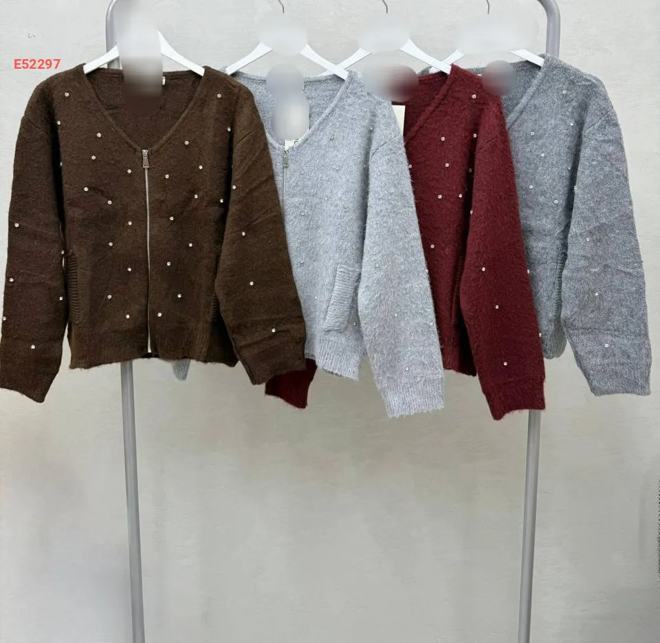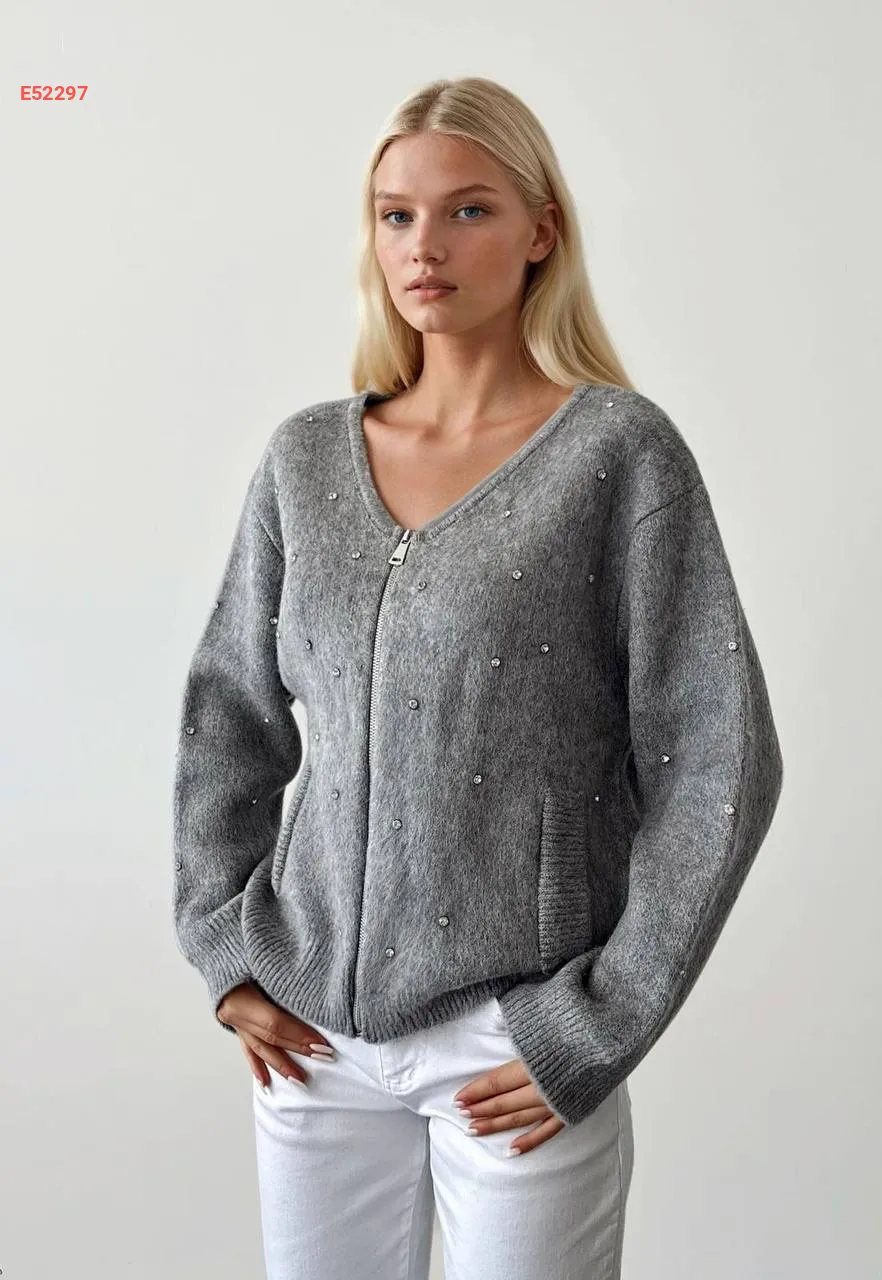 جاكيت تريكو قبة v مزين أحجار