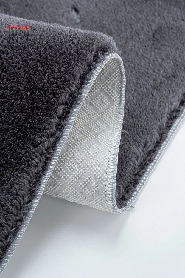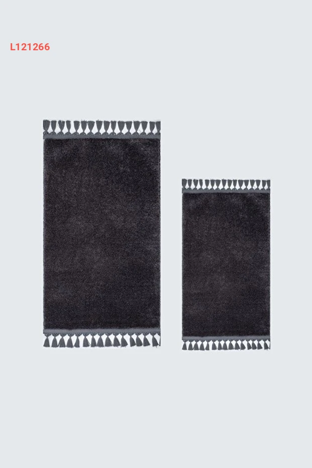 بساط حمام فخم غير قابل للانزلاق مع حواف مزخرفة مزدوجة - مجموعة 2 قطع أنثراسيت