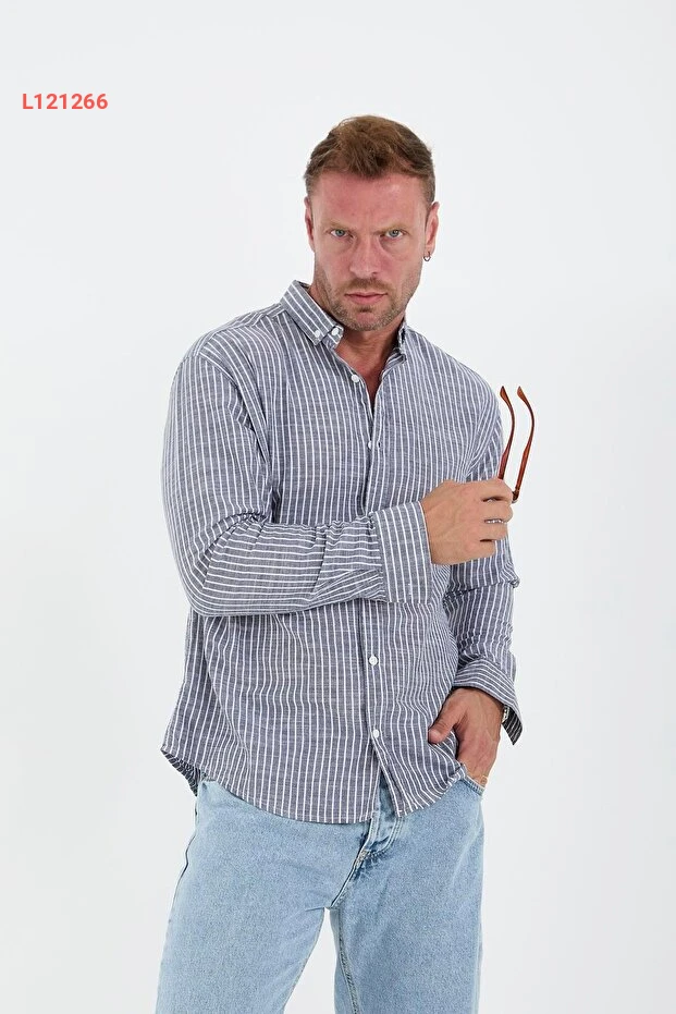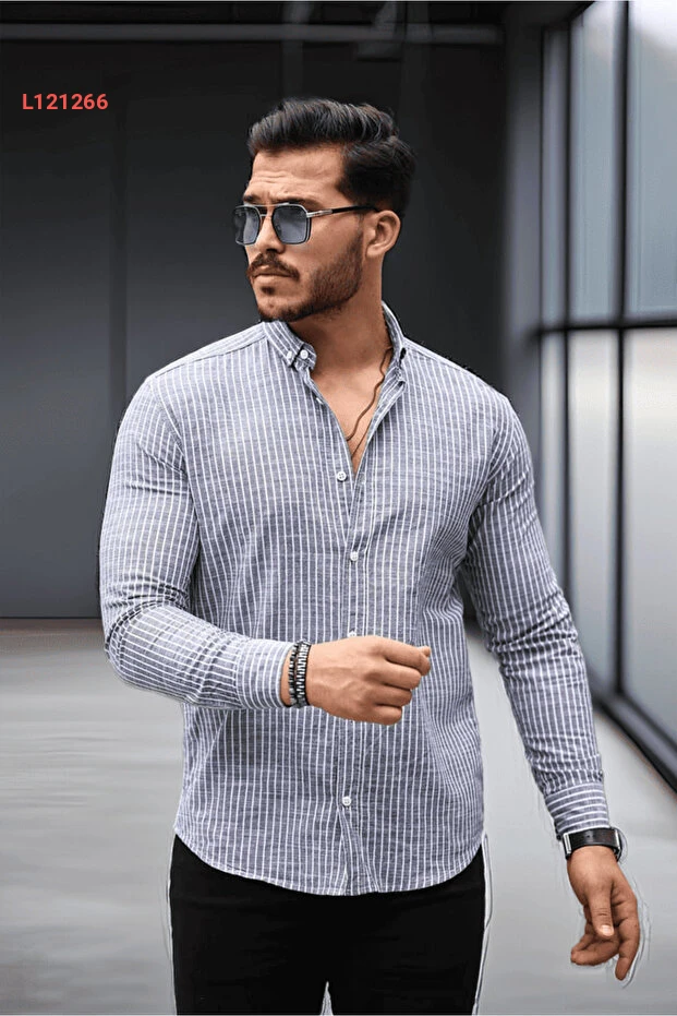 قميص كارينا القطني الرجالي الأنيق ذو التصميم القابل للتنفس - أزرق داكن