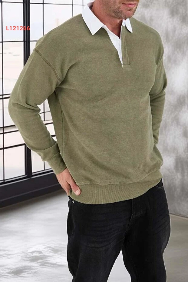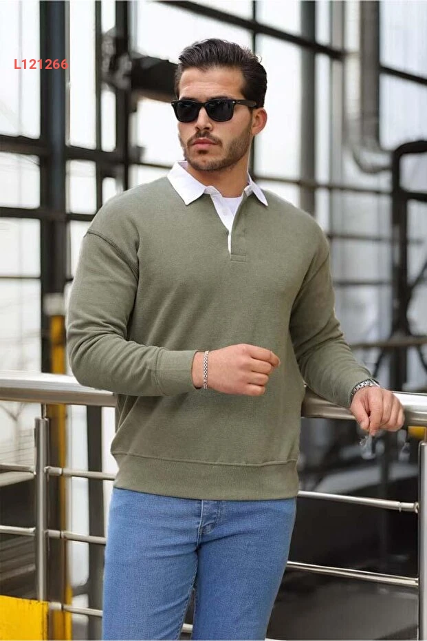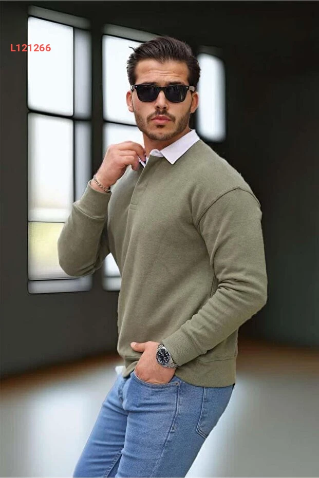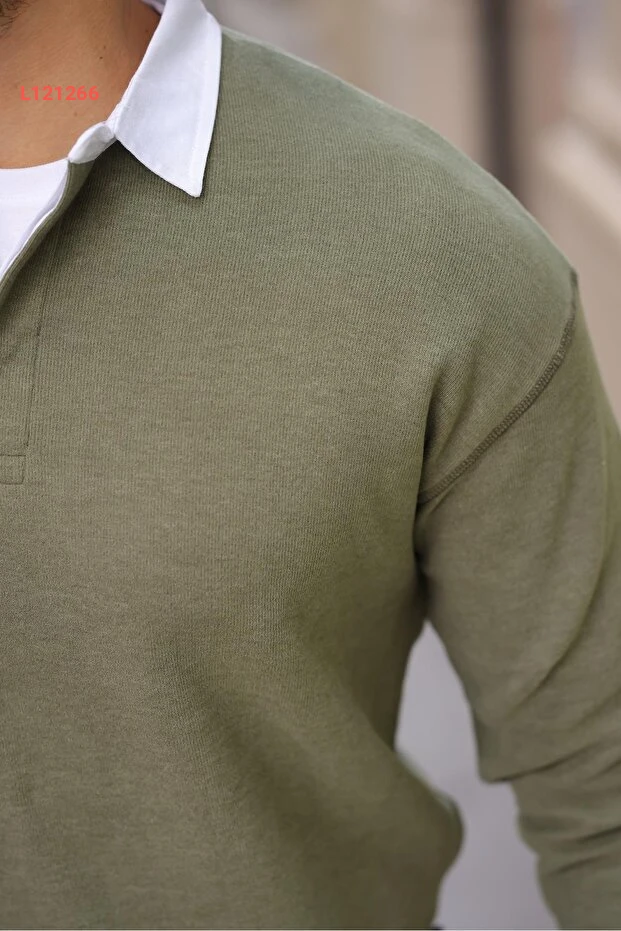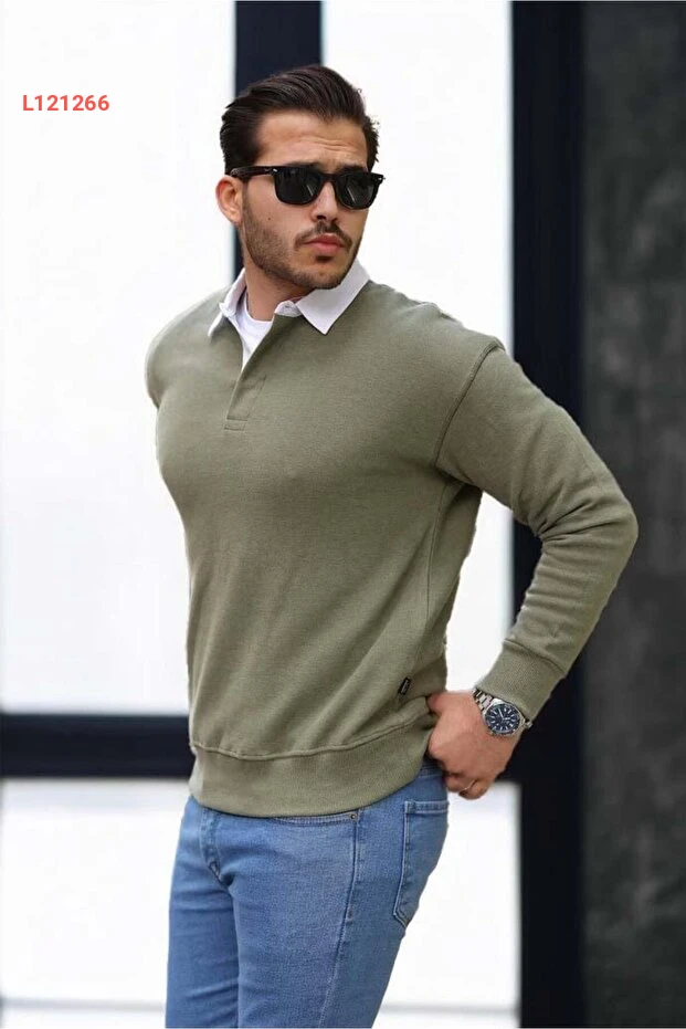 سويت شيرت رجالي بفنيلة لويز بولو - لون حَكي فاتح