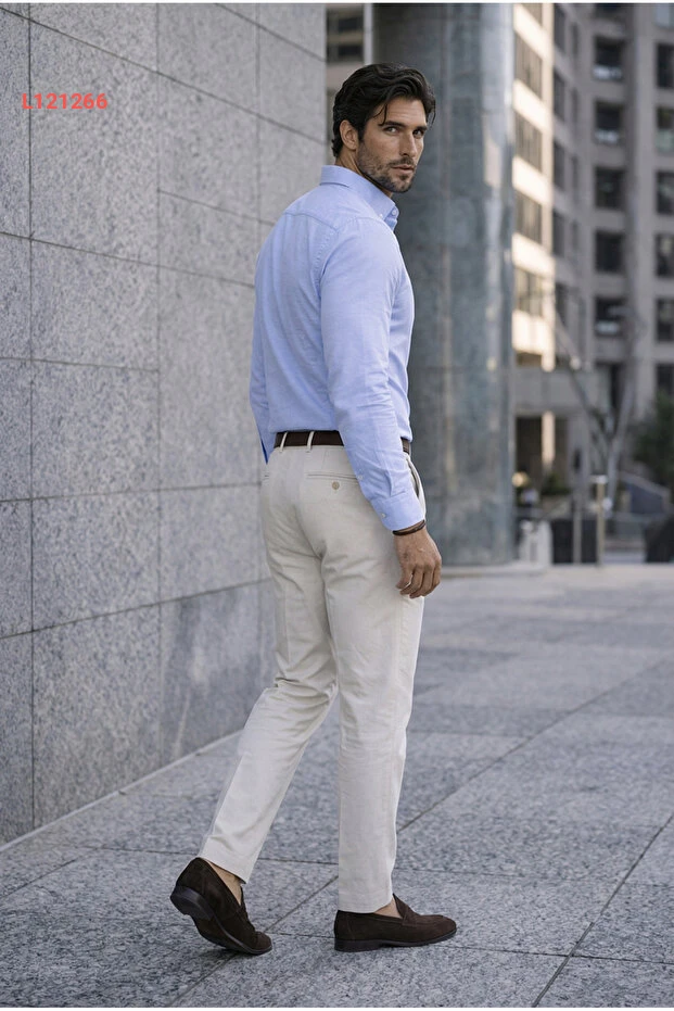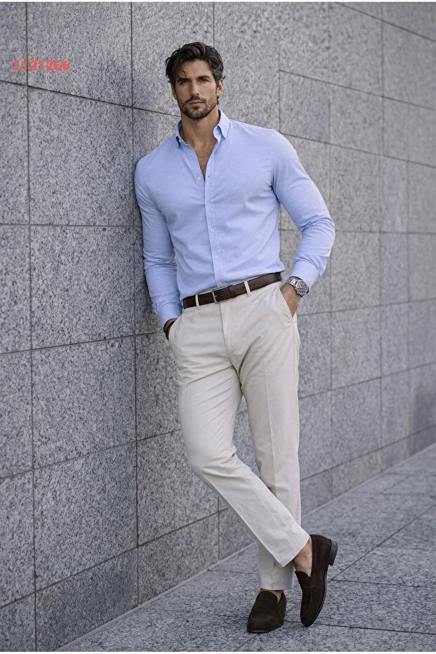 قميص أوكسفورد كلاسيكي للرجال بقصة عادية ومريح من فاليبرتا - لون أزرق فاتح