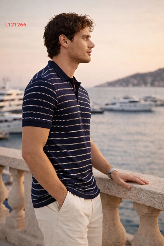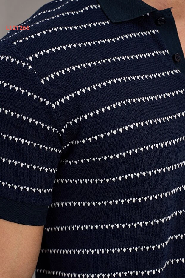 تي شيرت رجالي مزخرف من قماش فيسكوز - لون أزرق داكن