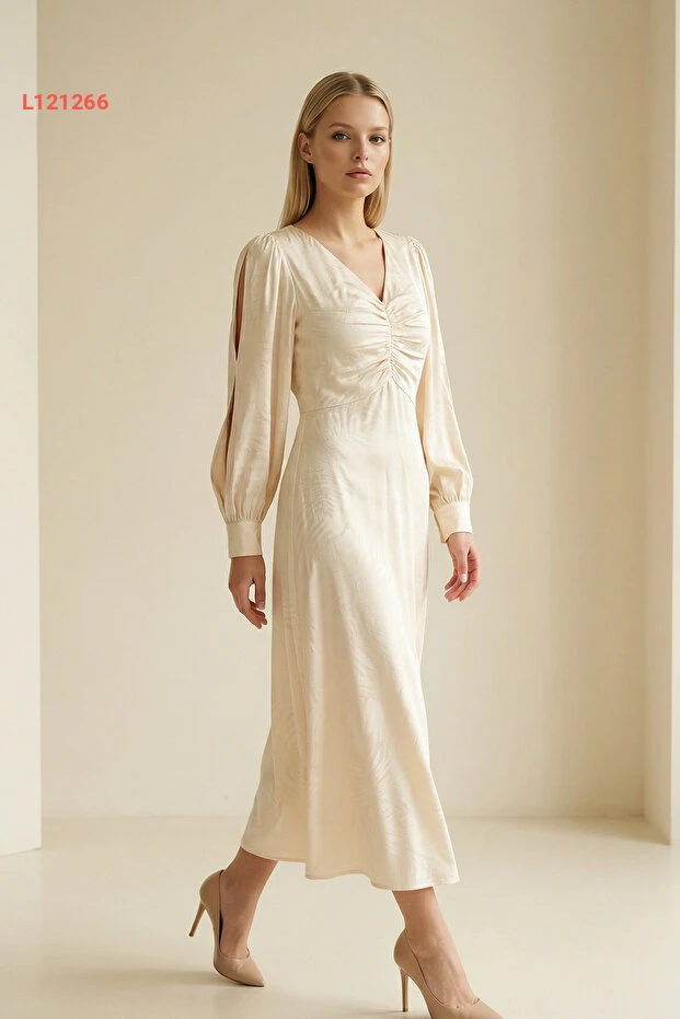 استمتعي بأناقتك مع فستان Setre Vanilya المميز، والذي يأتي بتصميم على شكل حرف V مع تفاصيل تجاعيد جميلة، ليضفي لمسة من الأنوثة على إطلالتك. مصنوع من قماش مريح ومزخرف بنمط جذاب، هذا الفستان المثالي للمناسبات المختلفة سيوفر لك الراحة والثقة في كل خطوة.