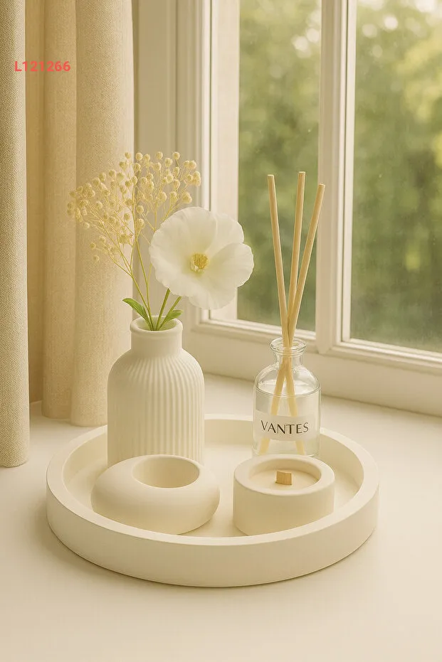 اكتشف جمال التصميم مع مجموعة VANTES البيضاء المخصصة، التي تضم حامل الشموع وزهرة الفازة، مما يضيف لمسة من الأناقة إلى أي مساحة. مثالي لتزيين المنزل أو كهدية مميزة، يمنحك هذا الإكسسوار الجمالي مظهرًا عصريًا يجذب الأنظار. (يُرجى ملاحظة أن الزهور غير مشمولة).