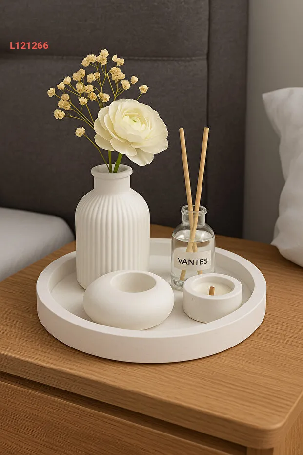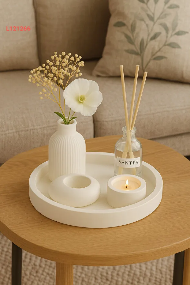 مجموعة أكسسوارات مميزة لحامل الشموع والزهور بتصميم أبيض فاخر