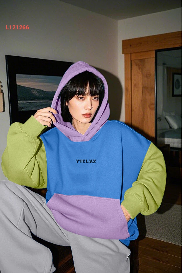 احصل على لمسة عصرية مع هودي فاتفاليمن الملون بالأزرق، الأخضر، والليلكي. يجمع هذا السويت شيرت بين الراحة والأناقة بفضل القماش الناعم والبطانة الدافئة، مما يجعله مثالياً للأيام الباردة والمظهر الكاجوال الجذاب. استمتع بتصميم الكابوشون العصري الذي يضيف لمسة من التميز إلى إطلالتك.