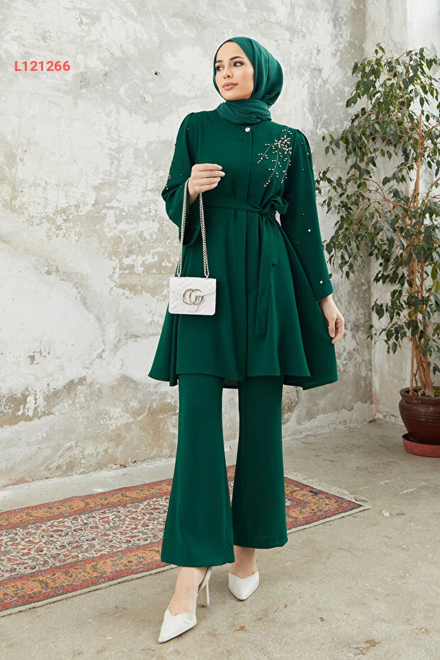 استمتعي بالأناقة والراحة مع مجموعة VAVİNOR Rina Tunik Pantolon Takım بلون الزمرد الجذاب. تتكون هذه المجموعة من قمة أنيقة وبنطلون مريح، مما يجعلها مثالية للمناسبات اليومية والخروج مع الأصدقاء. تضفي لمسات التصميم العصري والتفاصيل الدقيقة لمسة من الفخامة على إطلالتك، لتبقي في قمة الأناقة طوال اليوم.
