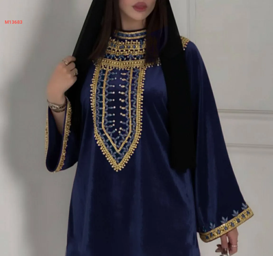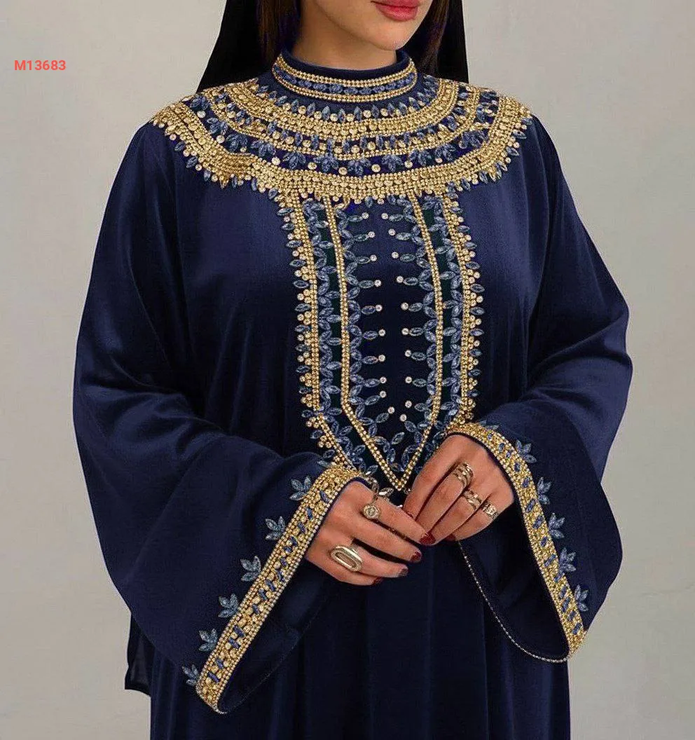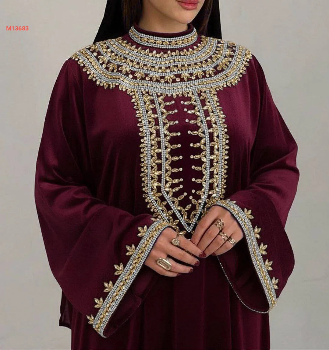 عباية مخمل مرصعة بالكريستال والألماس