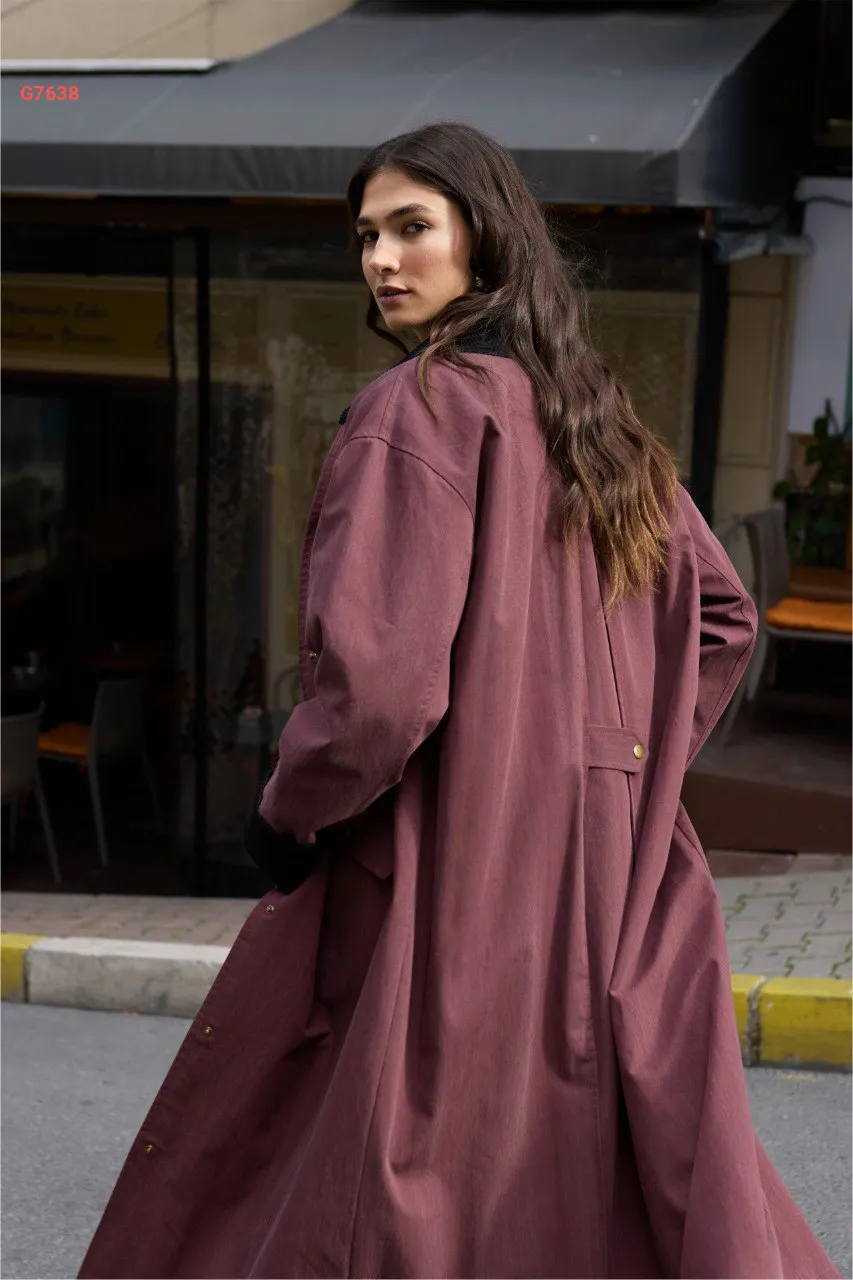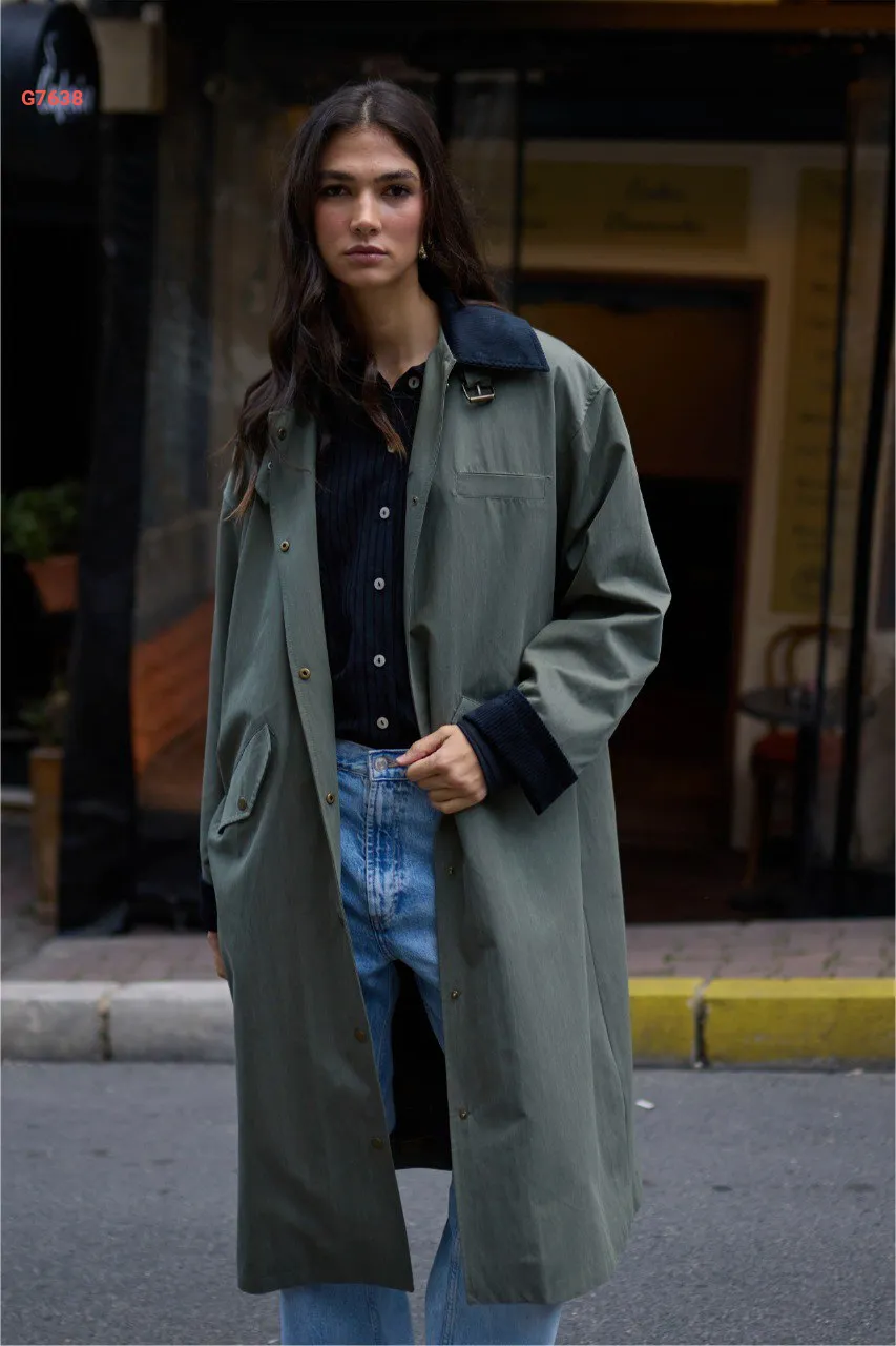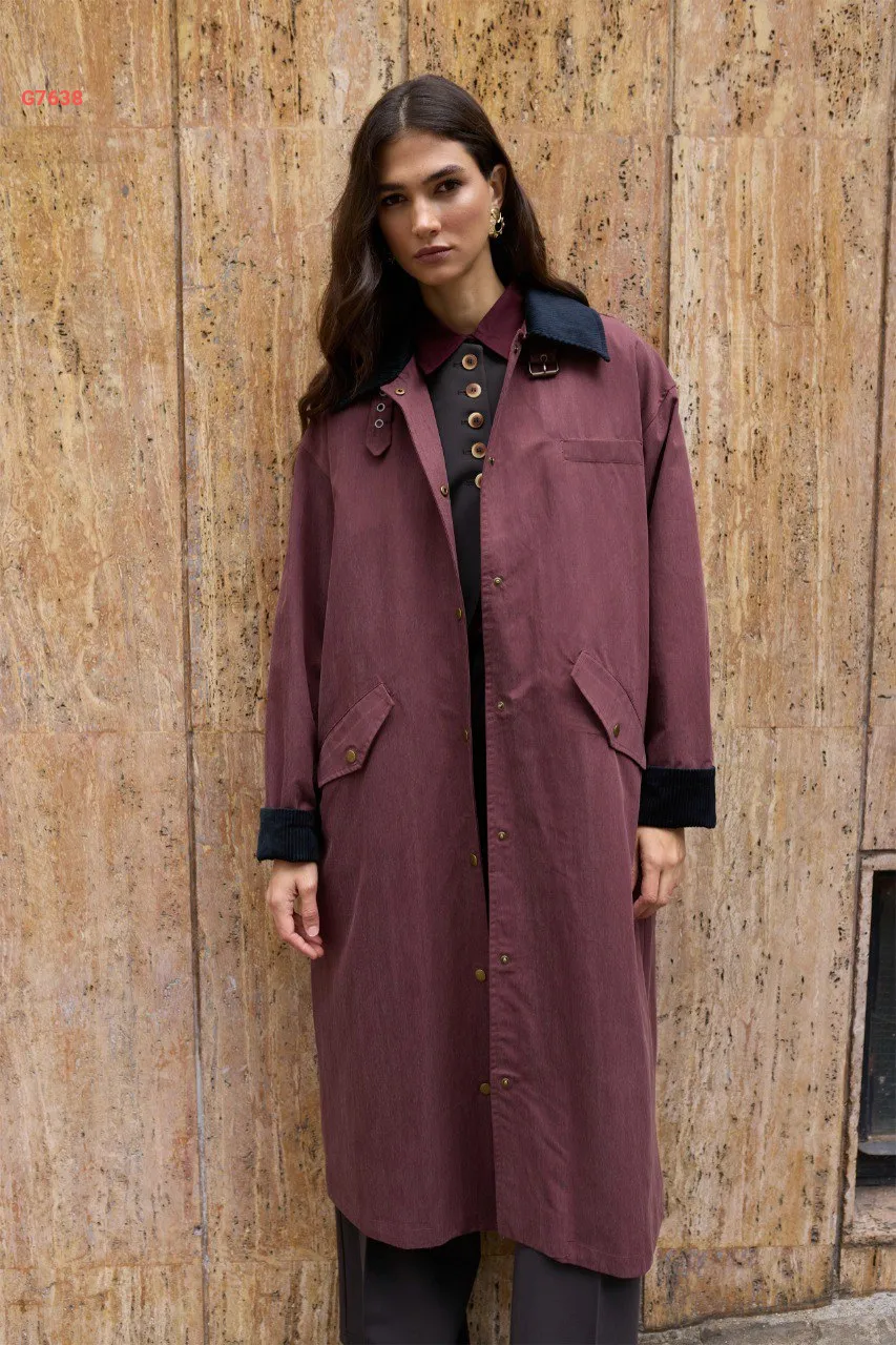 ترانشكوت بياقة وأكمام مخمل