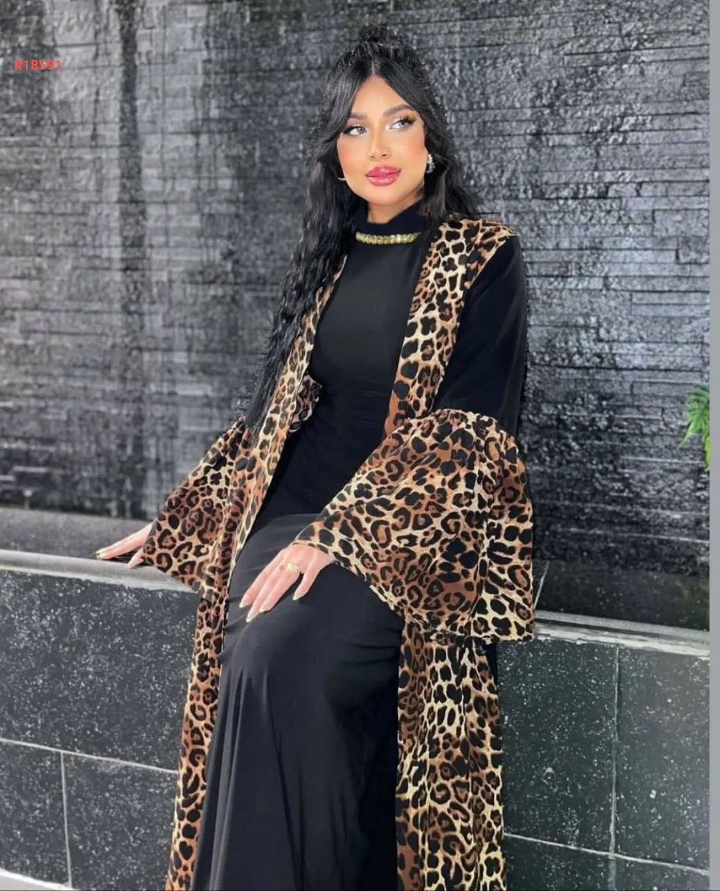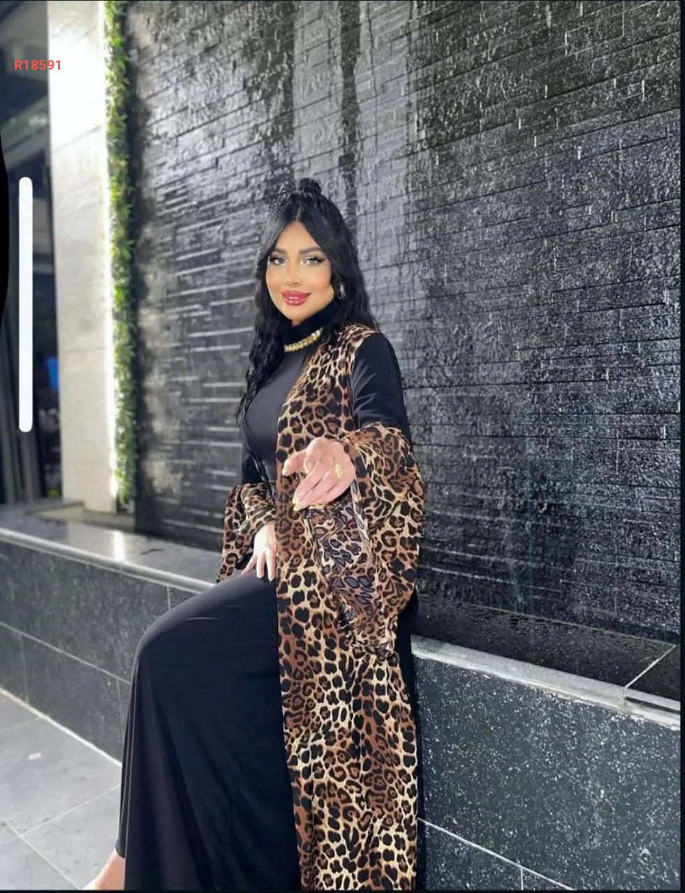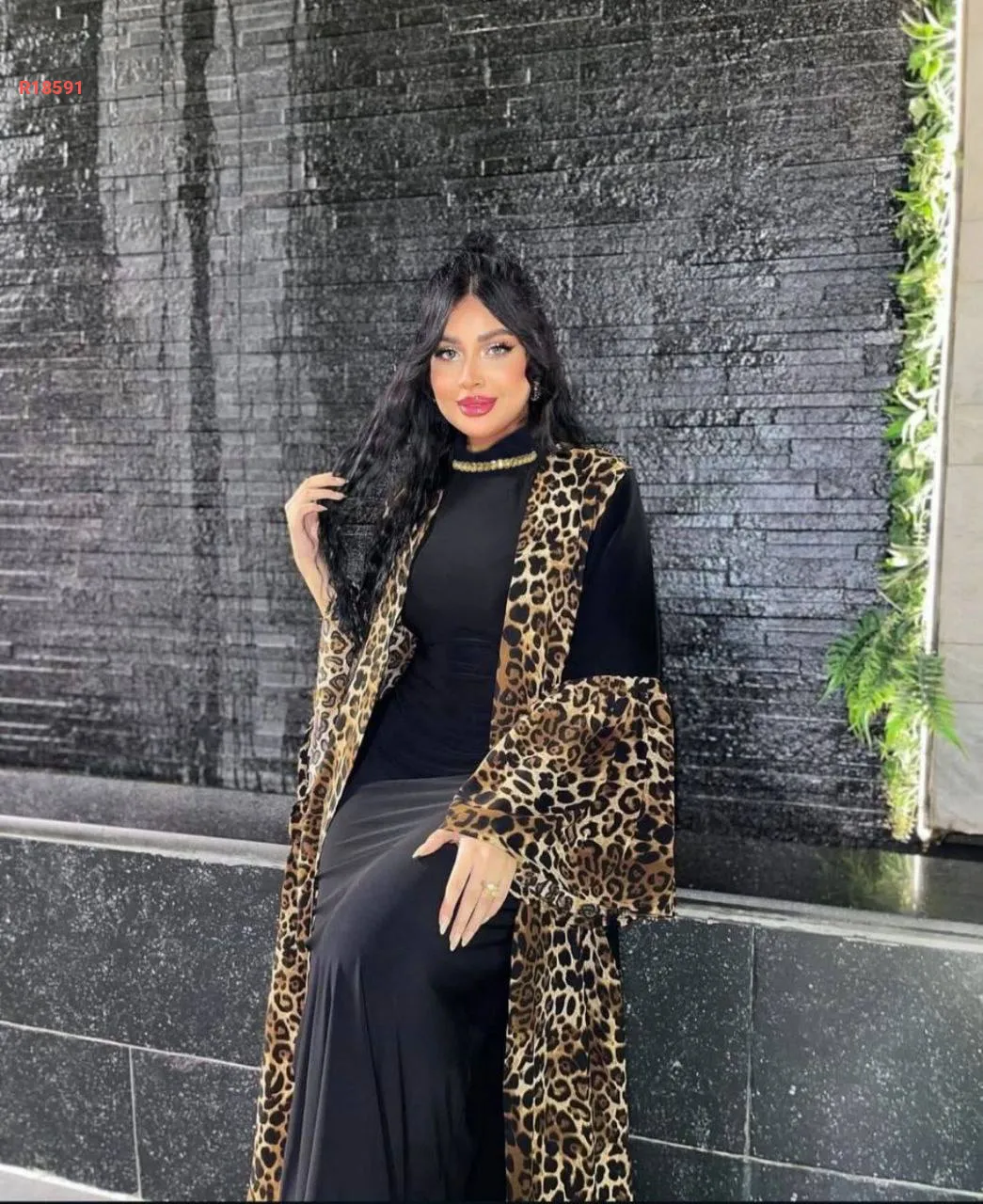 العباية 😅بقصة عريضة و اكمام كلوش ناعم مريحة منسقه مع التايجر😌