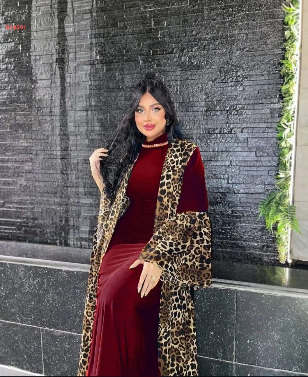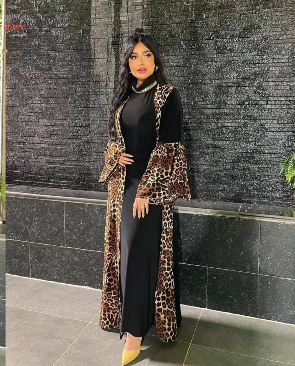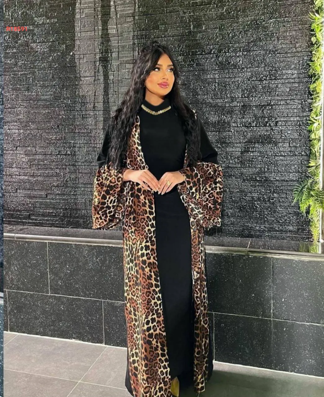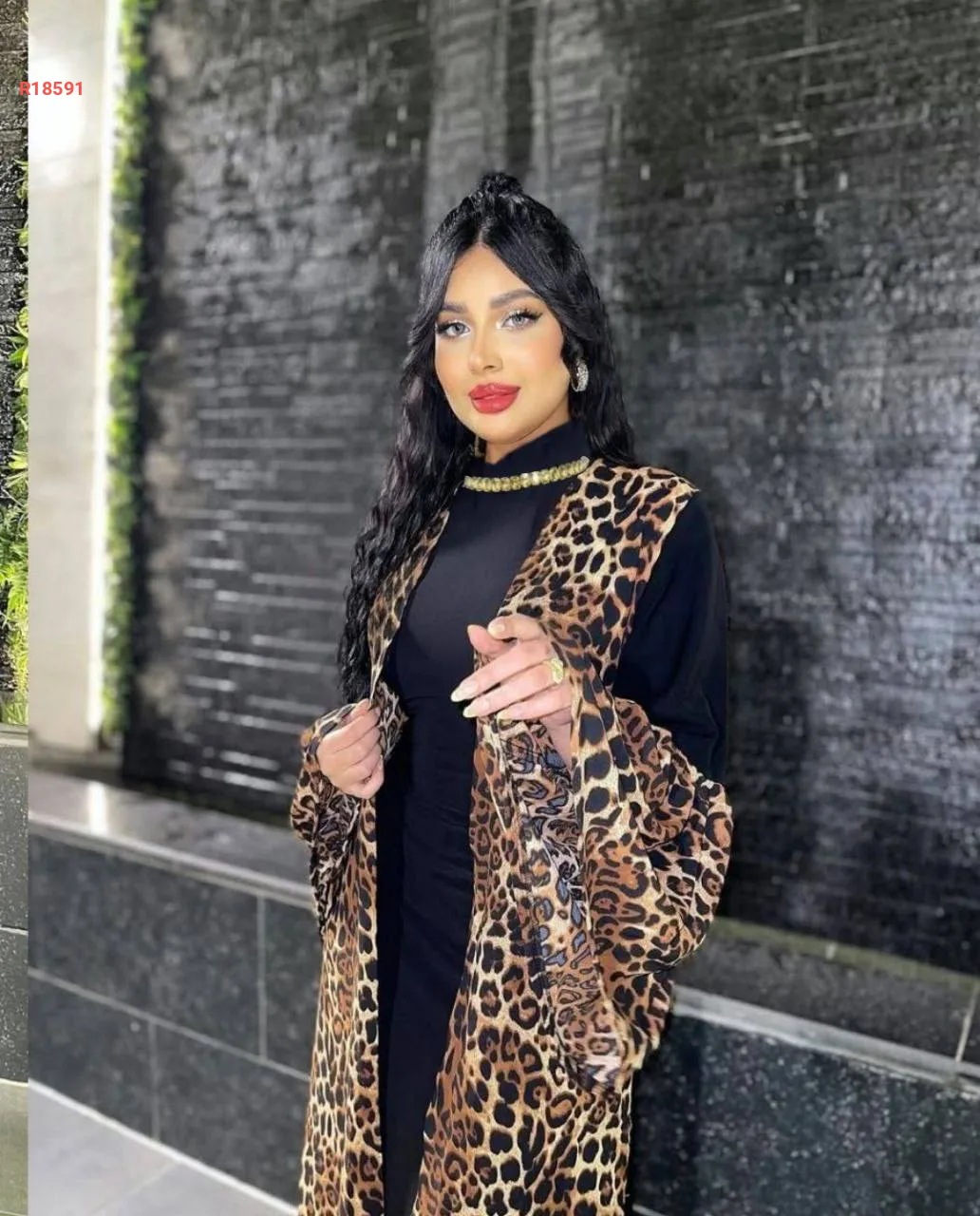 العباية 😅بقصة عريضة و اكمام كلوش ناعم مريحة منسقه مع التايجر😌