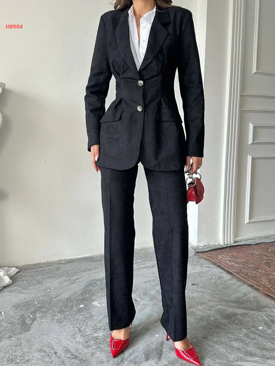 طقم بنطال مخمل وجاكيت مخصر