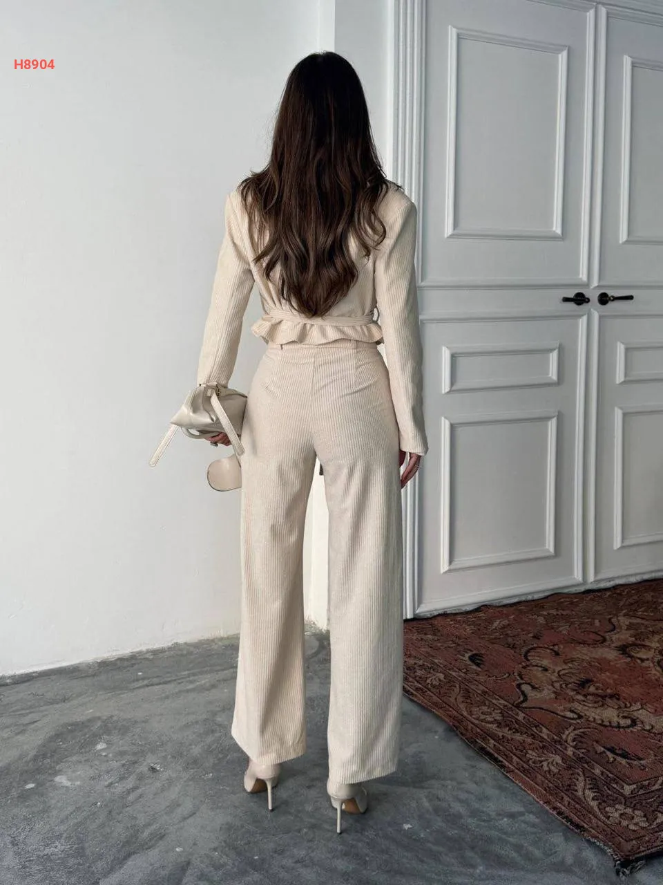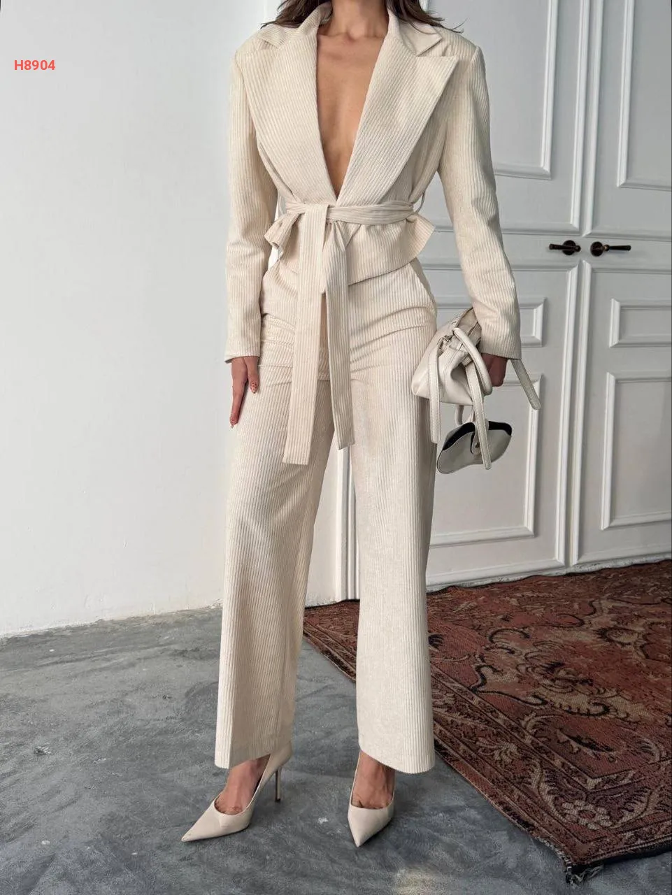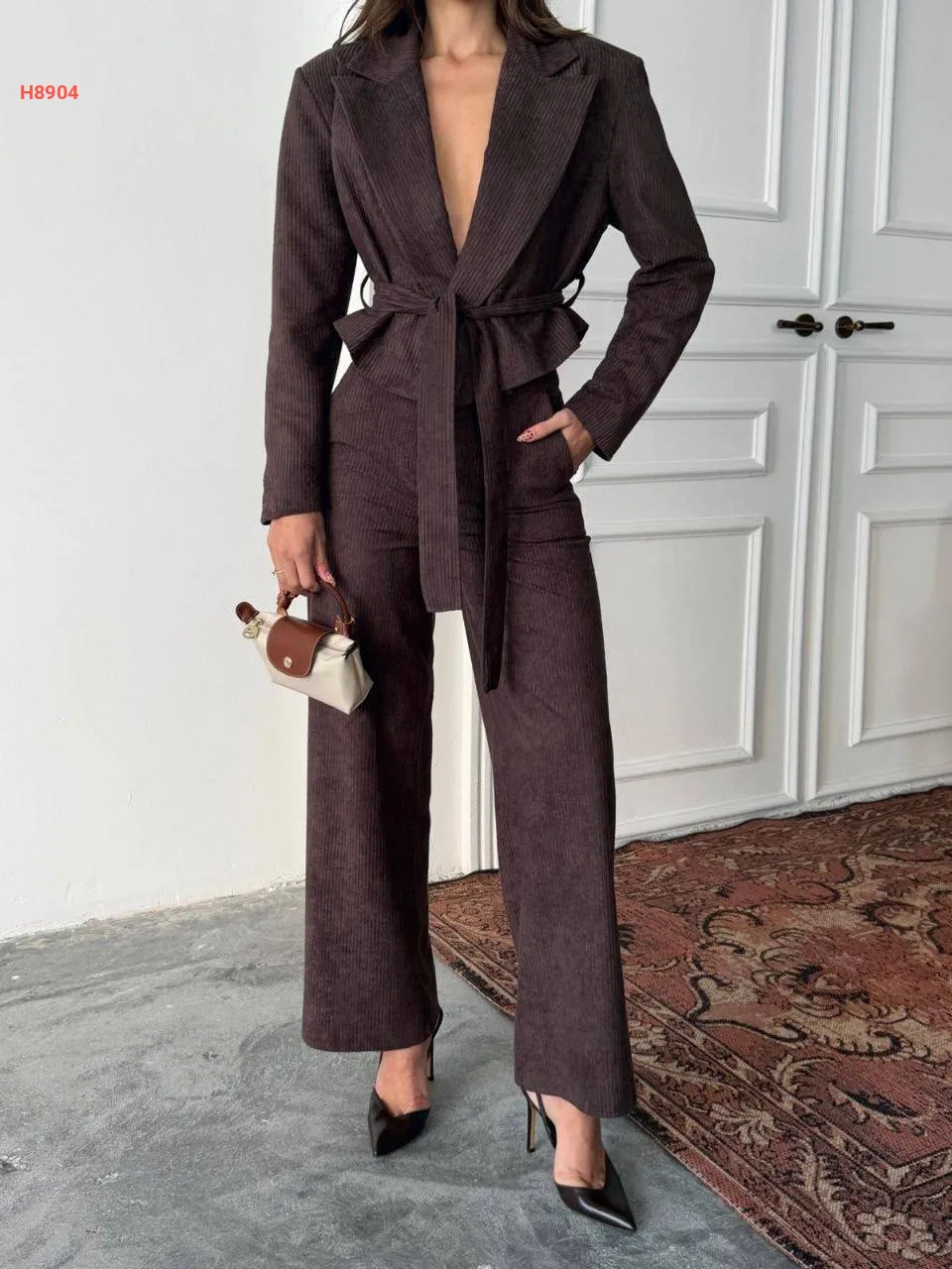 طقم بنطال مخمل وجاكيت بزنار