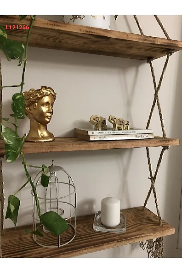 استمتع بتجميل منزلك مع رف VENTO HOME الثلاثي المميز بحبال الخشب. يجمع هذا التصميم الأنيق بين الجمالية والوظيفية، حيث يوفر مساحة مثالية لترتيب كتبك وديكوراتك بطريقة عصرية. مصنوع من مواد عالية الجودة، يضفي لمسة دافئة وطبيعية على أي مكان في منزلك.