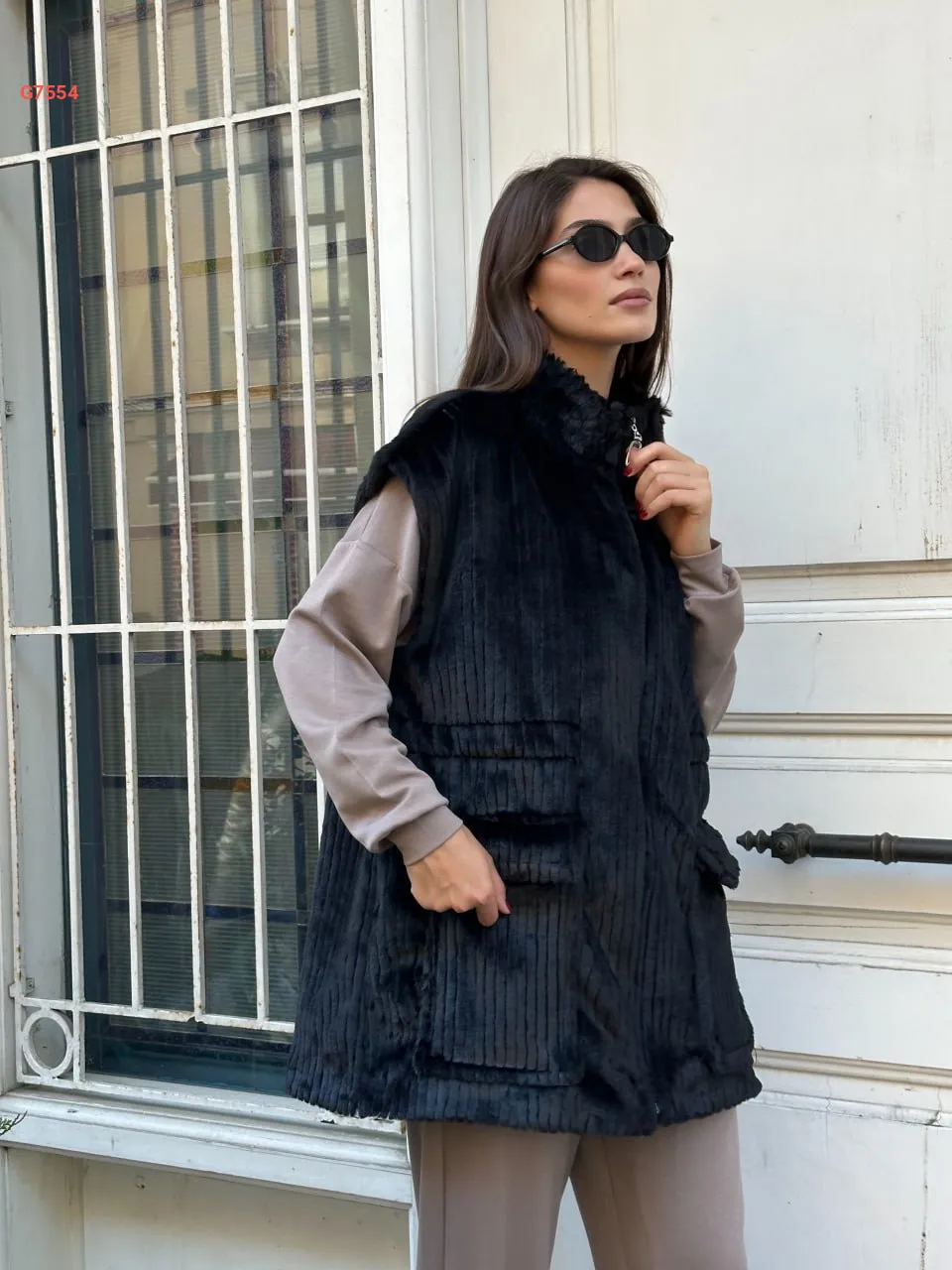 فيست سادة بسحاب ، صوف ناعم، بقبة مدورة، وجيب عريضة