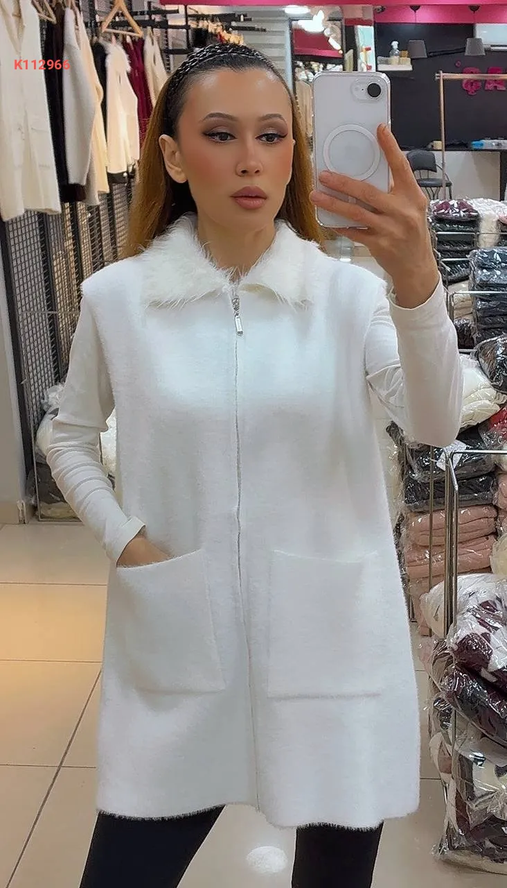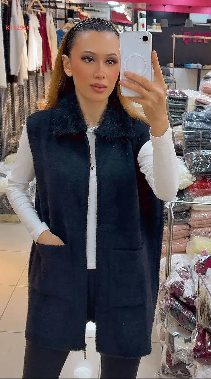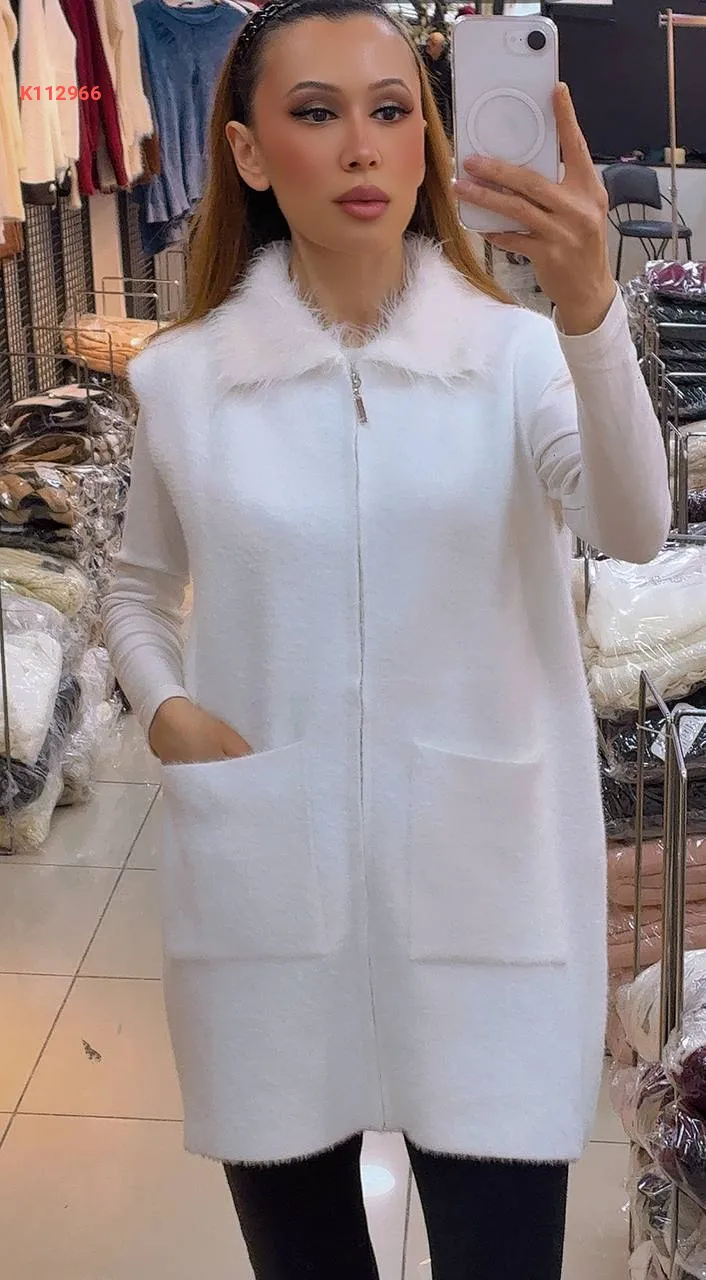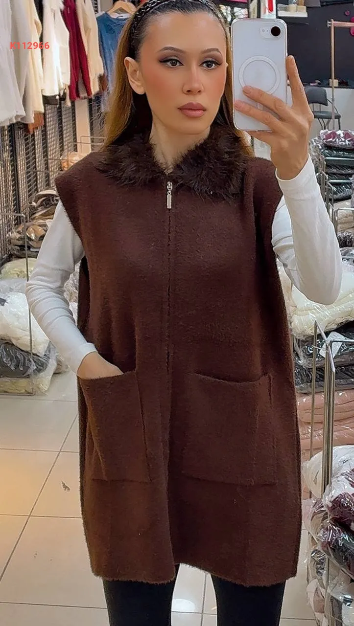 فيست صوف بسحاب، بجيب عريضة ، ياقة فرو