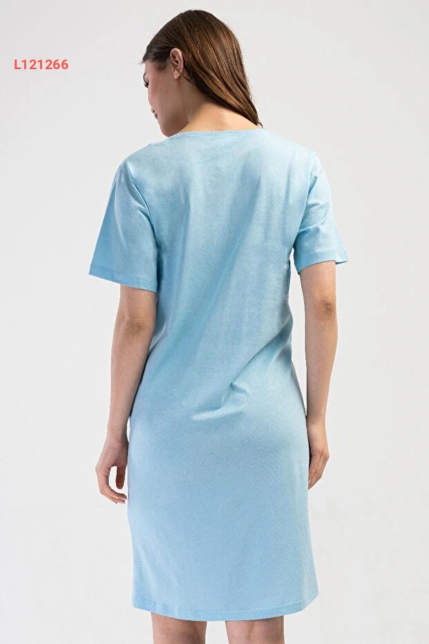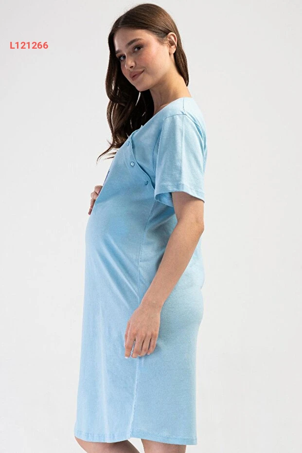 بيغيتا - فستان نوم قصير مخصص للحوامل والمرضعات 100% قطن باللون الأزرق