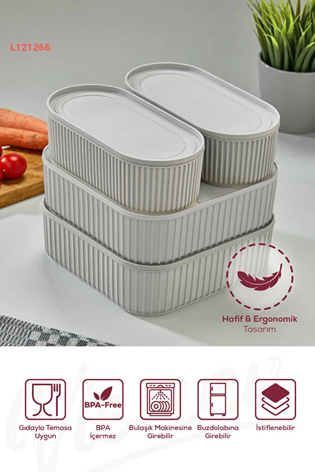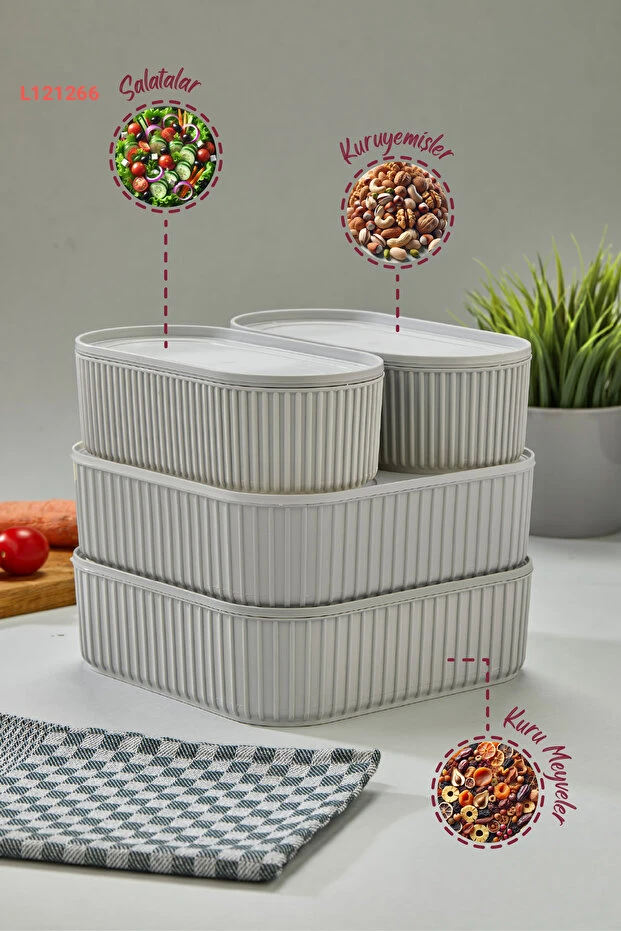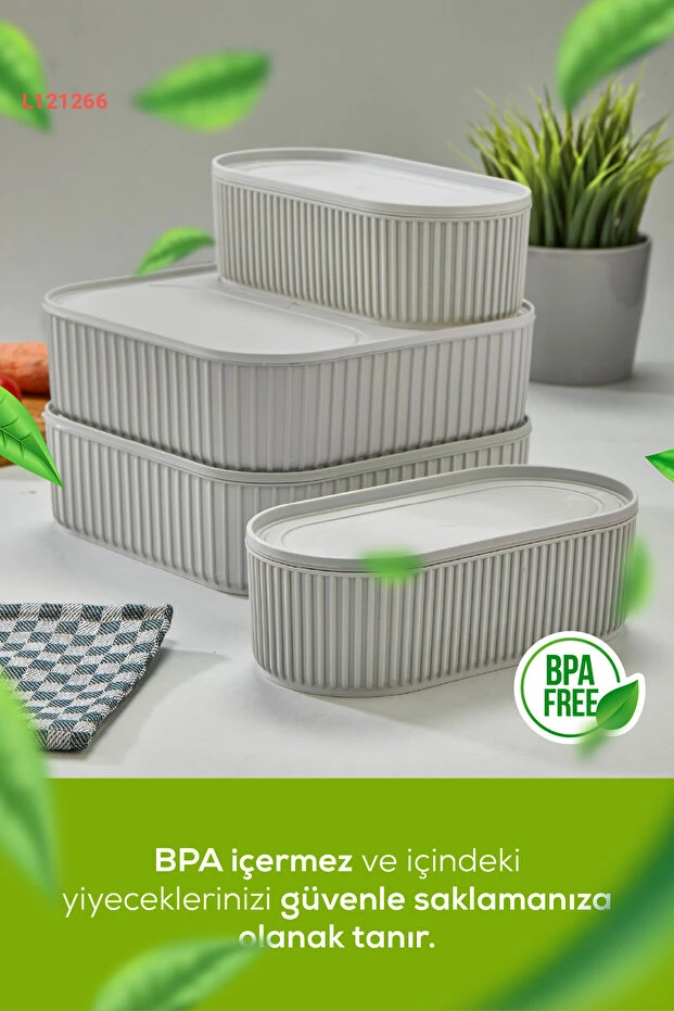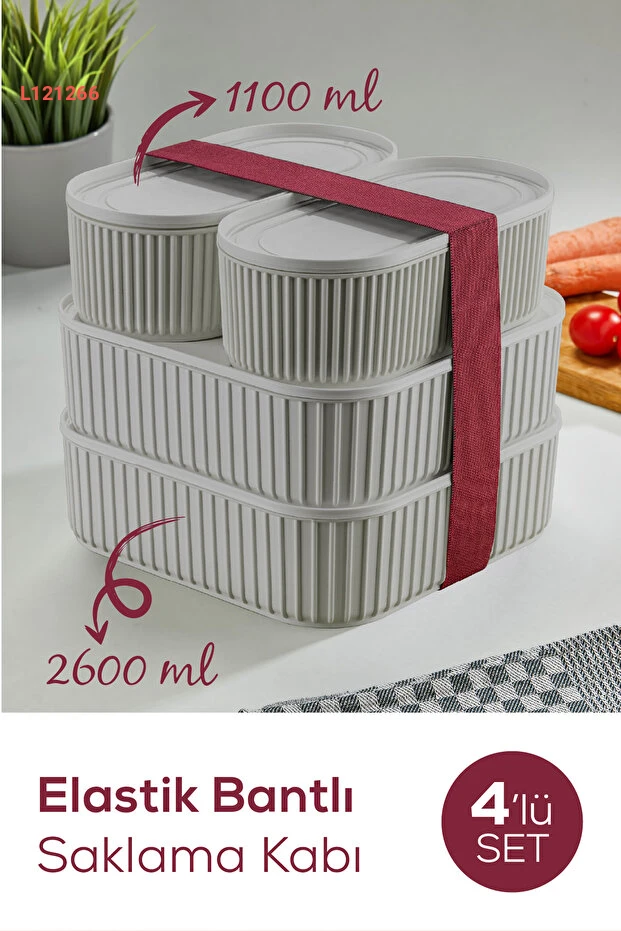 مجموعة صناديق تخزين عملية مع أشرطة مطاطية - 4 قطع (2 سعة 1100 مل و2 سعة 2400 مل) باللون الرمادي