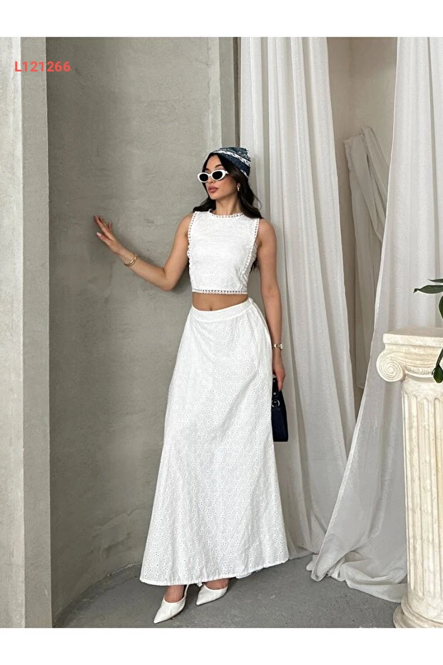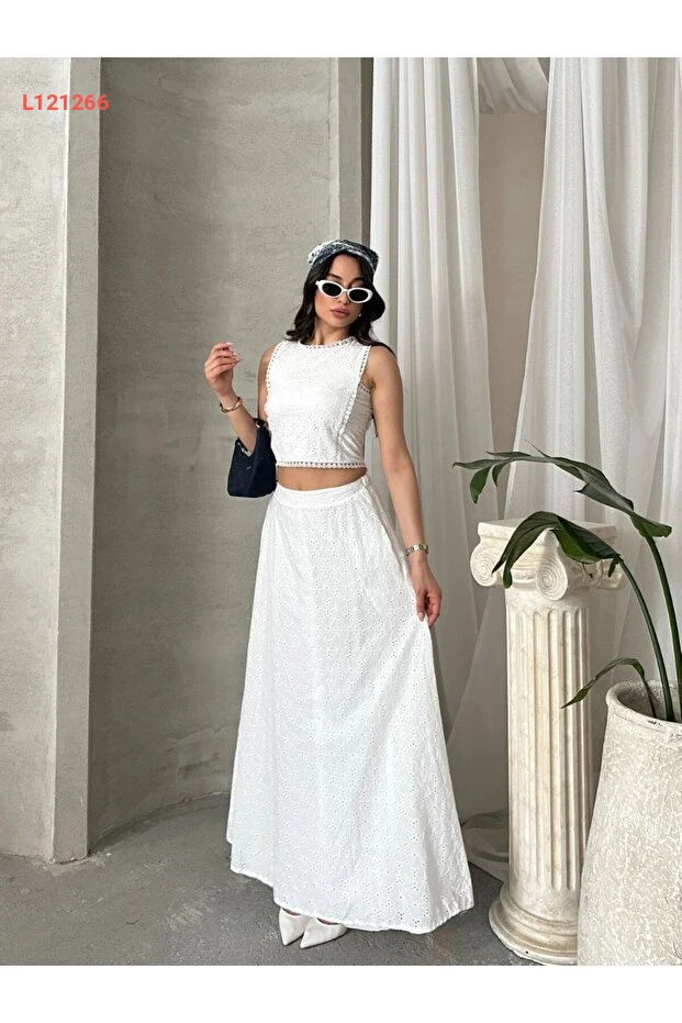 استمتع بأشعة الشمس مع مجموعة Viskosa Brode İkili Takım، حيث تجمع بين الأناقة والراحة في تصميم رائع. يتكون من قطعة علوية قصيرة عصرية وتنورة ماكسي عالية الخصر، مثالية لإطلالة صيفية مميزة. تم تصميمه من نسيج فيسكوز ناعم، ليمنحك شعوراً بالانتعاش والراحة طوال اليوم، مما يجعله خيارك المثالي لعطلاتك ومناسباتك الصيفية.