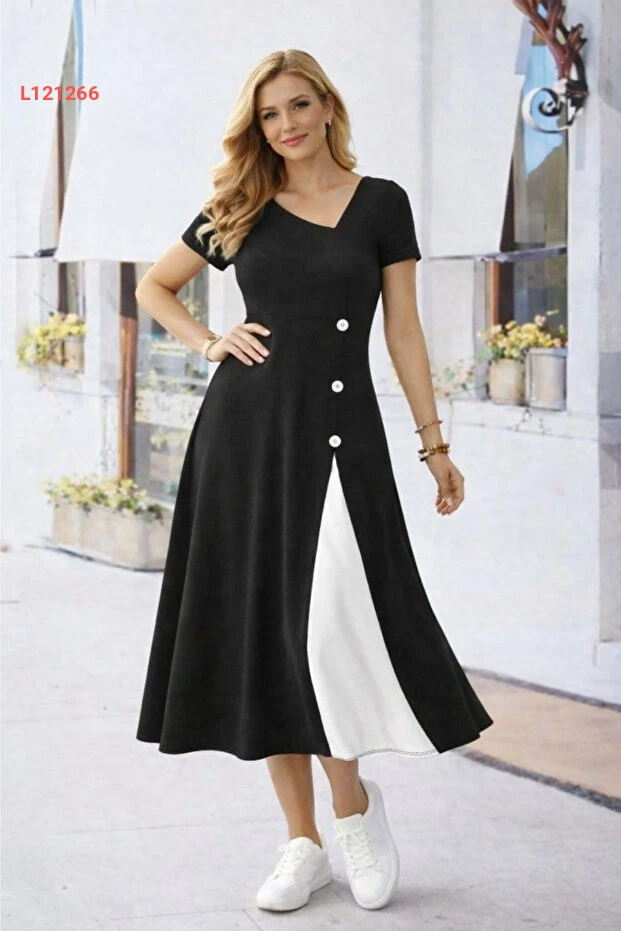 استمتعي بإطلالة أنيقة وعصرية مع فستان Viyamo الجديد! يتميز بقصته القصيرة الأكمام وذو ياقة غير متساوية، مما يمنحك جاذبية فريدة، بينما تضيف تفاصيل الأزرار لمسة مميزة. مصنوع من ألياف فيسكوز الناعمة، يضمن لك الراحة طوال اليوم ويبرز أنوثتك بطريقة رائعة.