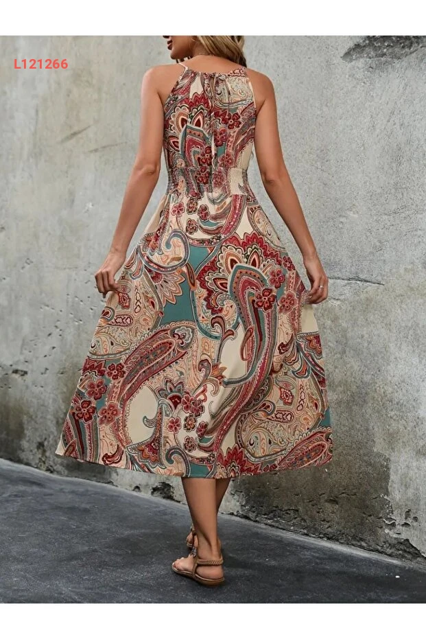 Viyamo Yeni Sezon Kadın Etnik Desen Rahat Yazlık Uzun Elbise