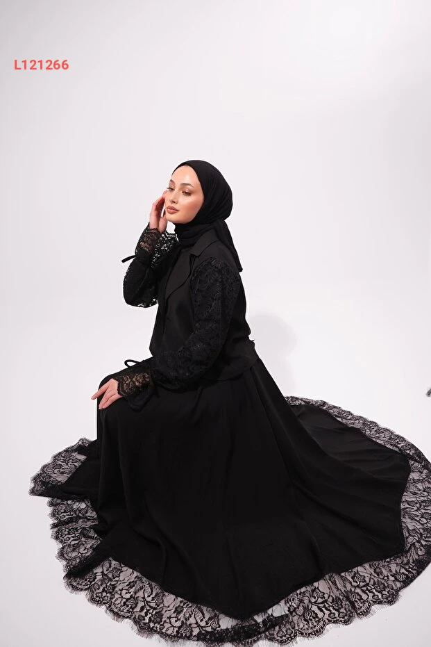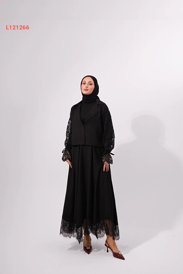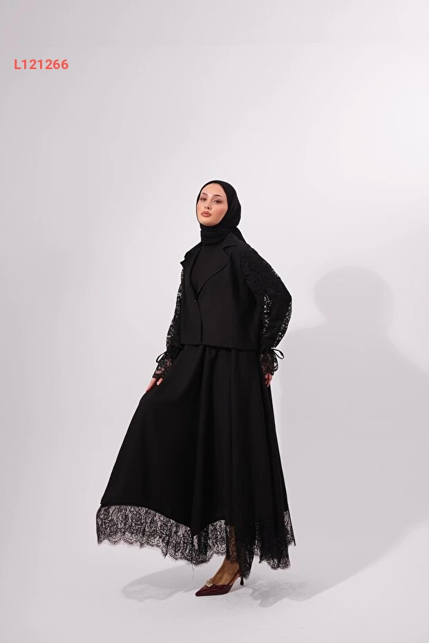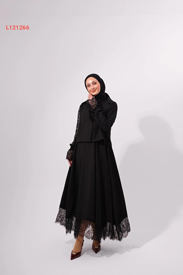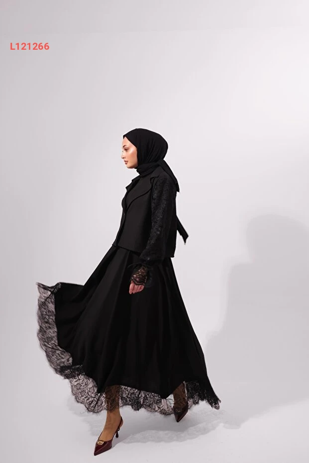 مجموعة فستان تنورة قماش الفراولة بتفاصيل دانتيل من فويتيك