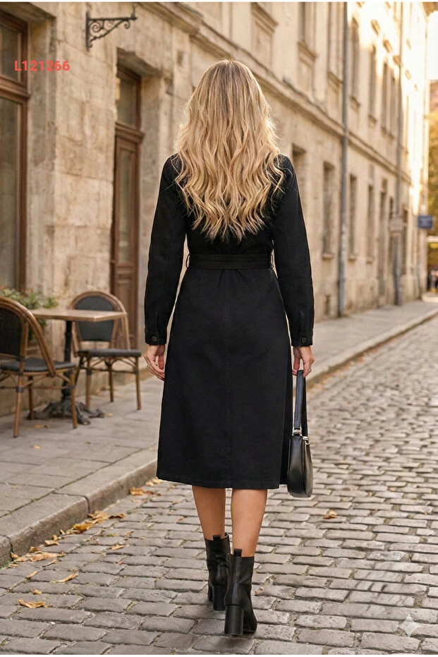 استمتع بالأناقة والراحة مع معطف Vovikon الدنيم الطويل والمتميز بحزام أسود. يتميز بتصميمه العصري والأزرار الجميلة، مما يضفي لمسة من الأنوثة على إطلالتك، بينما يوفر لك الحماية المثلى في أجواء غير مستقرة. ارتدي هذا المعطف لتكوني محط الأنظار في كل مناسبة!
