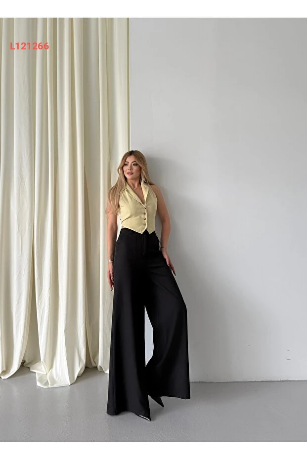 استمتع بإطلالة عصرية ومريحة مع بنطال Vuntal BUTİK Double Bol Paçalı Plazzo. تتميز تصميماته الواسعة بأنها تمنحك حرية الحركة وتضفي لمسة من الأناقة على كل مناسبة، بينما يضيف القماش الفاخر لمسة ناعمة ومريحة على بشرتك. ابرزي أناقتك بختيارات ألوان متنوعة تناسب جميع الأذواق.