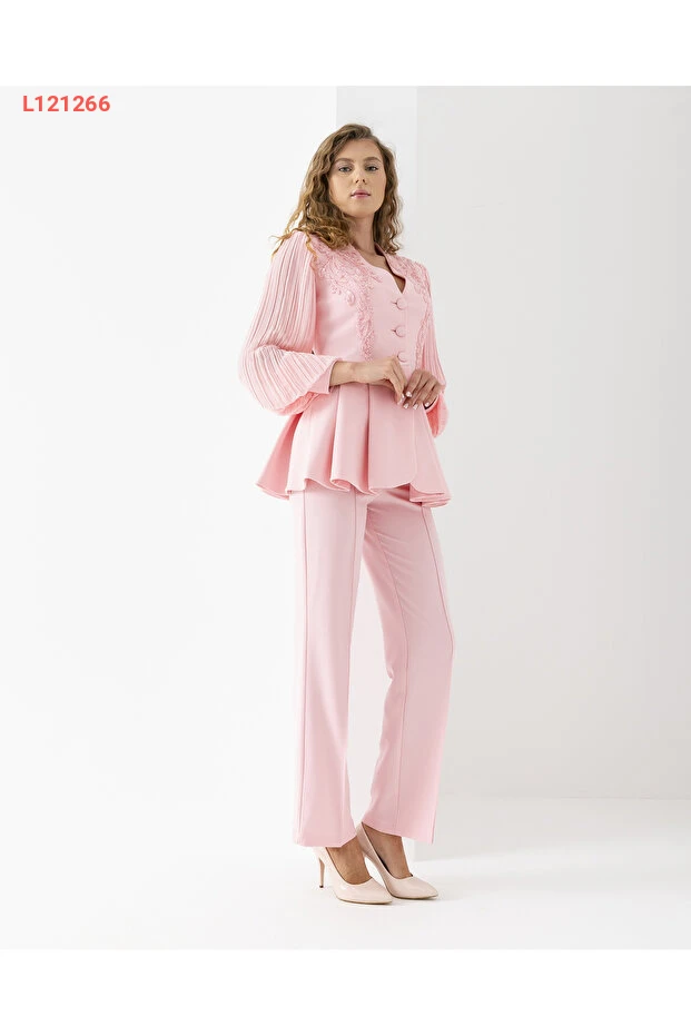 استمتع بإطلالة فريدة مع بدلة VUNTAL ذات التصميم الأنيق، التي تضم جاكيت مزين بأناقة بالتفاصيل الدانتيلية وأطراف مميزة. تضفي هذه القطعة لمسة من الفخامة والأنوثة، مما يجعلها الخيار المثالي للمناسبات الرسمية أو الاجتماعات المهمة، حيث تجمع بين الراحة والأناقة في آن واحد.