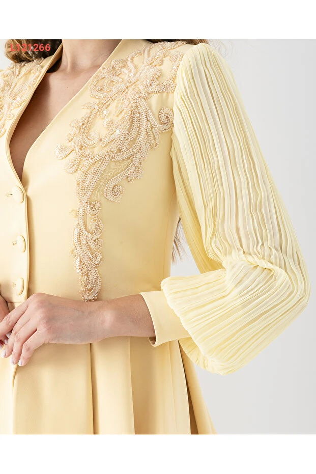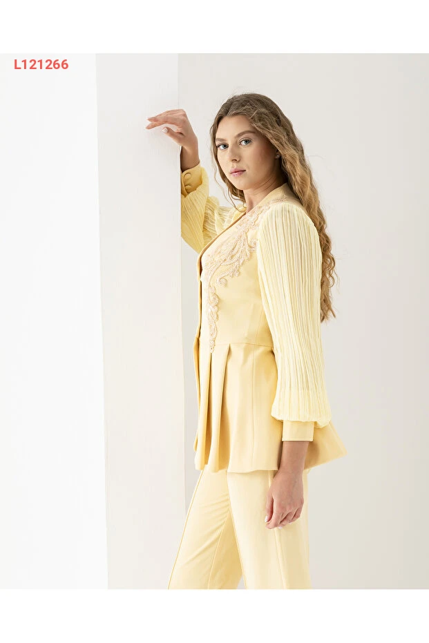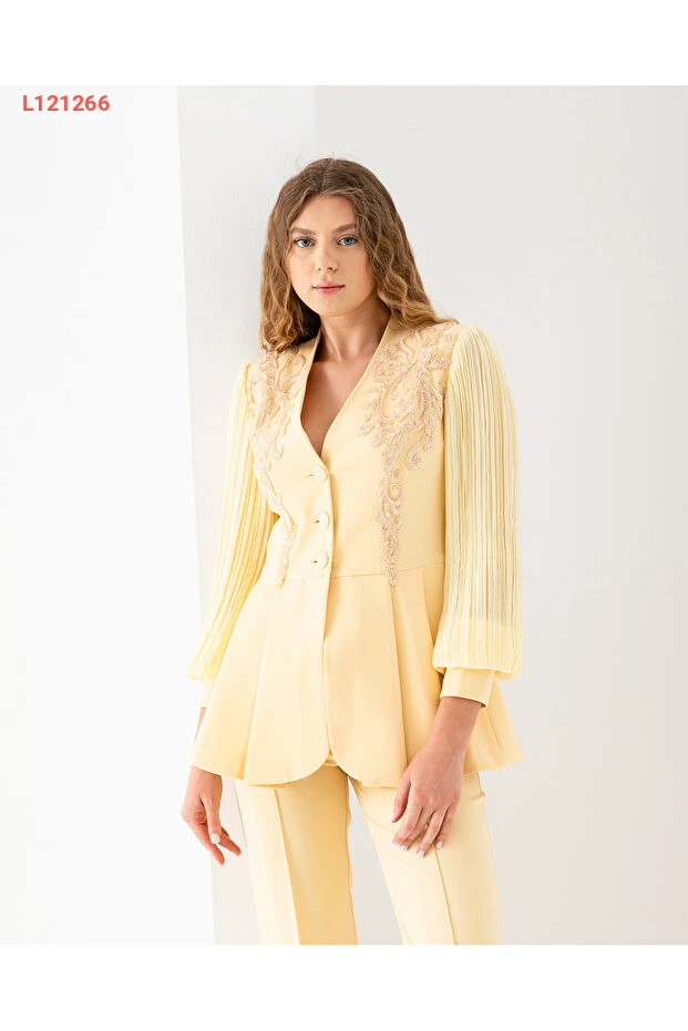 استمتع بأناقة لا تضاهى مع بدلة VUNTAL المطرزة ذات الأكمام المتدلية، والتي تجمع بين التصميم العصري والأناقة الكلاسيكية. يتميز هذا الزي بتفاصيل دقيقة وراقية، مما يجعله الخيار المثالي للمناسبات الخاصة أو لإطلالة يومية مميزة. ارتدي هذه البدلة لتحصلي على إطلالة تخطف الأنظار وتعكس ذوقك الرفيع.