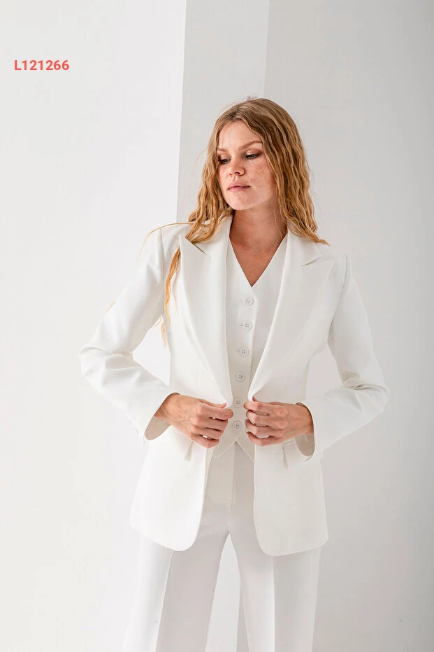 استمتع بالأناقة والفخامة مع مجموعة VUNTAL الثلاثية التي تشمل سترة بليزر ذات زر واحد، سروال، وستر بداخلها. مصنوعة من مواد عالية الجودة، تجسد هذه المجموعة الكلاسيكية التوازن المثالي بين الراحة والأناقة، مما يجعلها الخيار المثالي للمناسبات الرسمية أو في العمل. ارتقِ بإطلالتك واحصل على الثقة في كل خطوة مع VUNTAL.