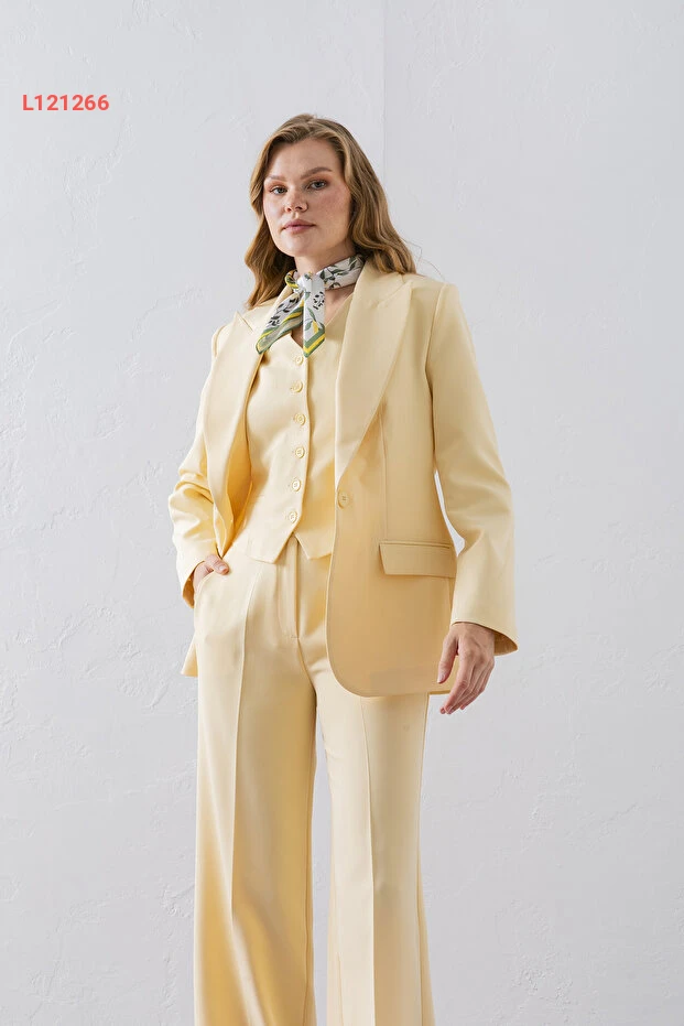 بدلة فنتال ثلاثية مع سترة بليزر أحادية الزر وبنطال وصديري
