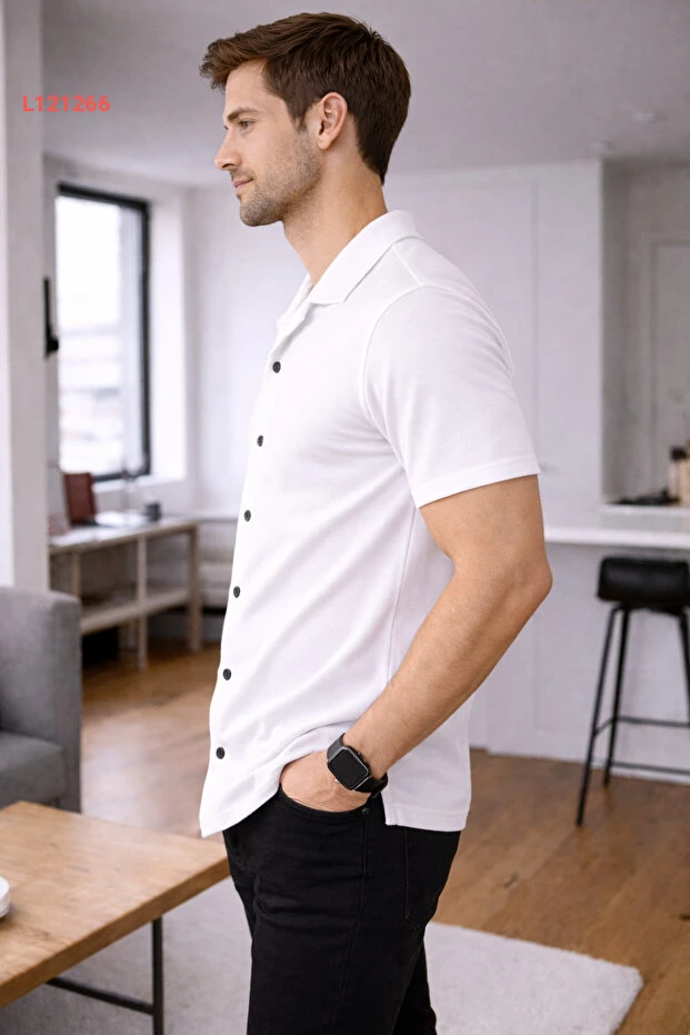 قميص بولو قصير الأكمام للرجال بتصميم أنيق من WE AND ME