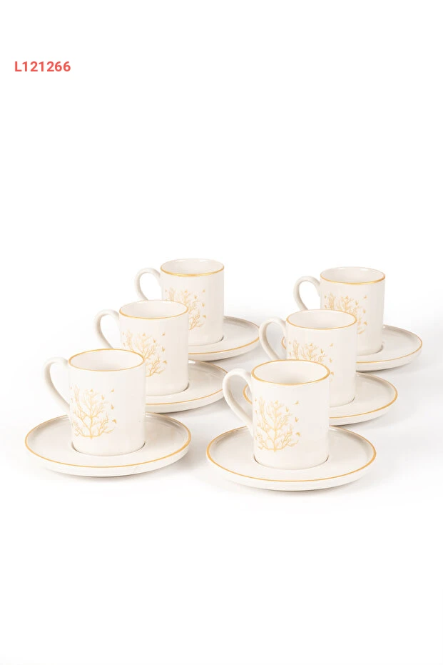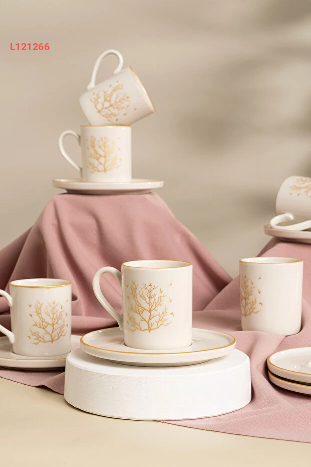 طقم فناجين قهوة أبيض مزين بشجرة الحياة - 12 قطعة لستة أشخاص