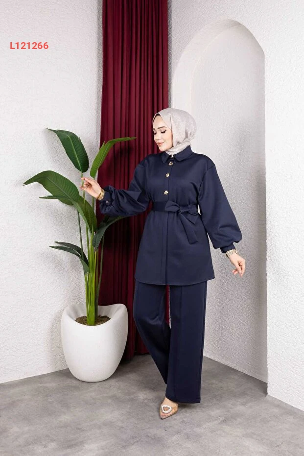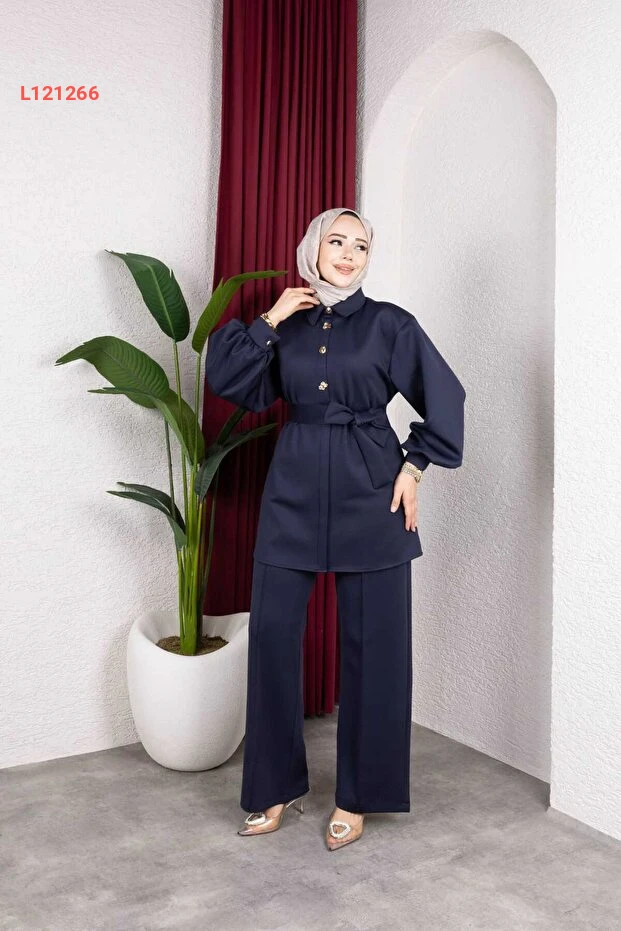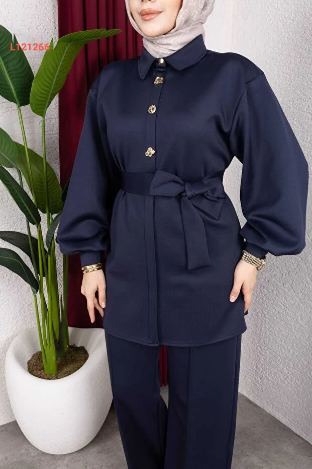 استمتعِ بأناقتكِ مع طقم التونيك والبنطلون الأزرق الضعيف، الذي يجمع بين الراحة والفخامة بفضل تصميمه العصري وحتّى تفاصيله الأنيقة مثل الأزرار والأكمام الطويلة. يأتي الطقم مزودًا بحزام يضيف لمسة جمالية ويحدد الخصر، مما يجعلكِ تتألقين في كل مناسبة. اختاري هذا الطقم لتكوني محور الإعجاب والتميز!