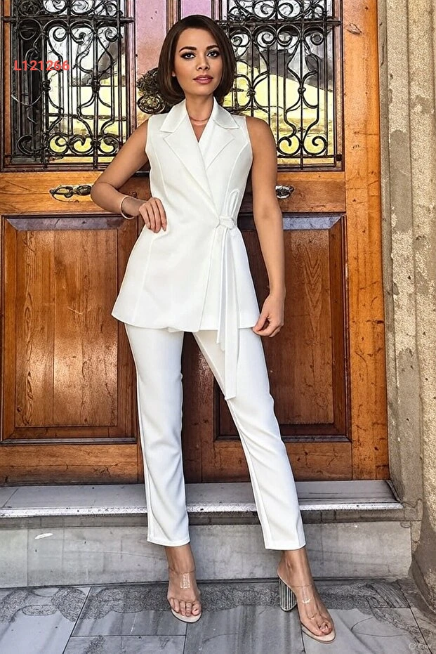 استمتع بالأناقة والراحة مع مجموعة diaves المكونة من سترة بمربط حزام وسروال حواري. تم تصميمها من قماش منسوج فاخر لتمنحك مظهرًا عصريًا يبرز أنوثتك، بينما يضيف الحزام المصمم بشكل أنيق لمسة فائقة من الجاذبية. اجعلي إطلالتك مميزة ومريحة في كل مناسبة!